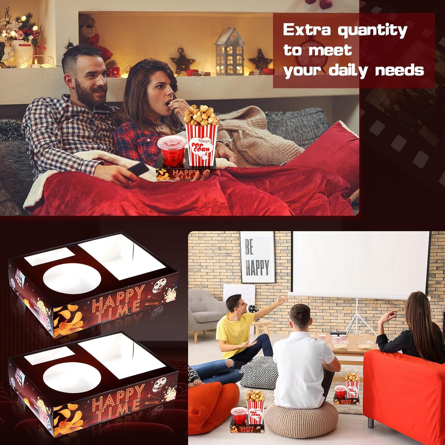 • Large in Quantities: you will be provided with 36 pieces of movie night snack trays in the package, sufficient in amounts, and each of them is designed with a cup holder, a place to put popcorn and a candy box, can support your use and replacement needs on some movie theater