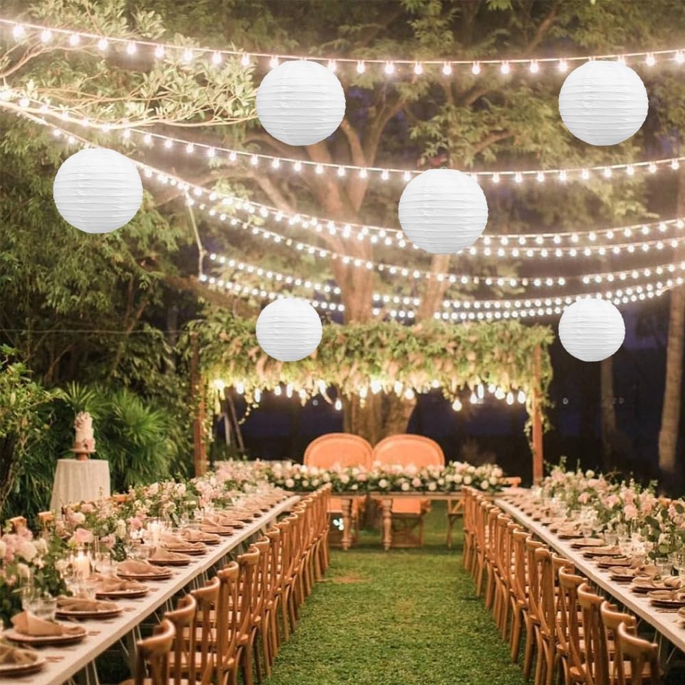 BEISHIDA 8-Inch White Paper Lanterns Decorative Chinese/Japanese Hanging Round Paper Lanterns Lamp for Birthday, Wedding, Christmas, Bridal, Home Decor, Party Decoration (6 Packs)