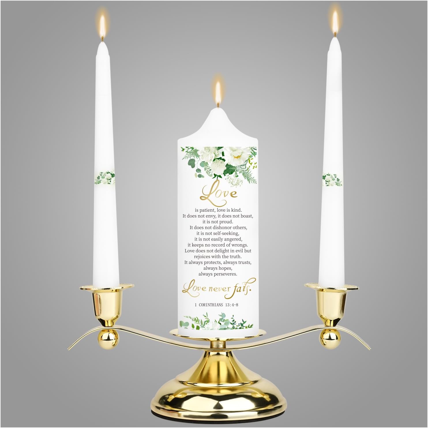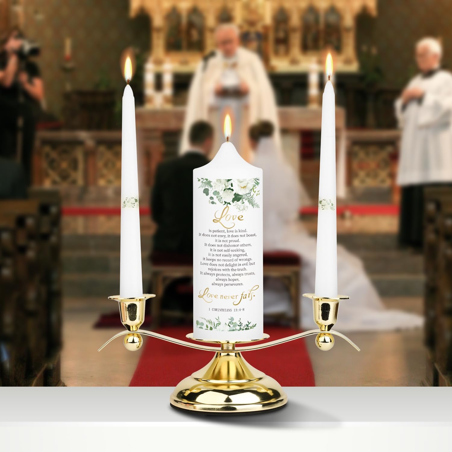 3 Unity Floral Candles for Wedding Ceremony Set with Golden Holder, Wedding Accessories for Reception