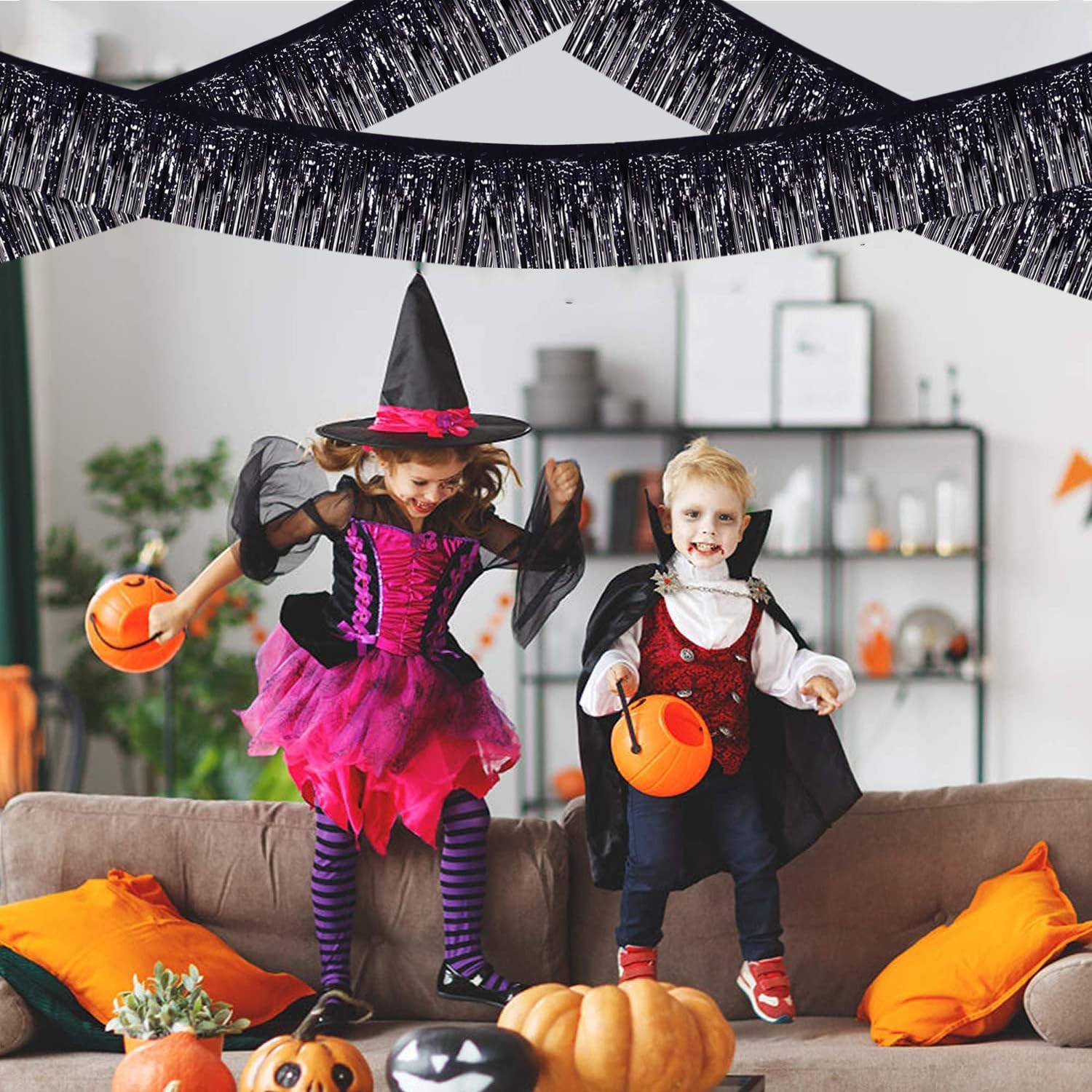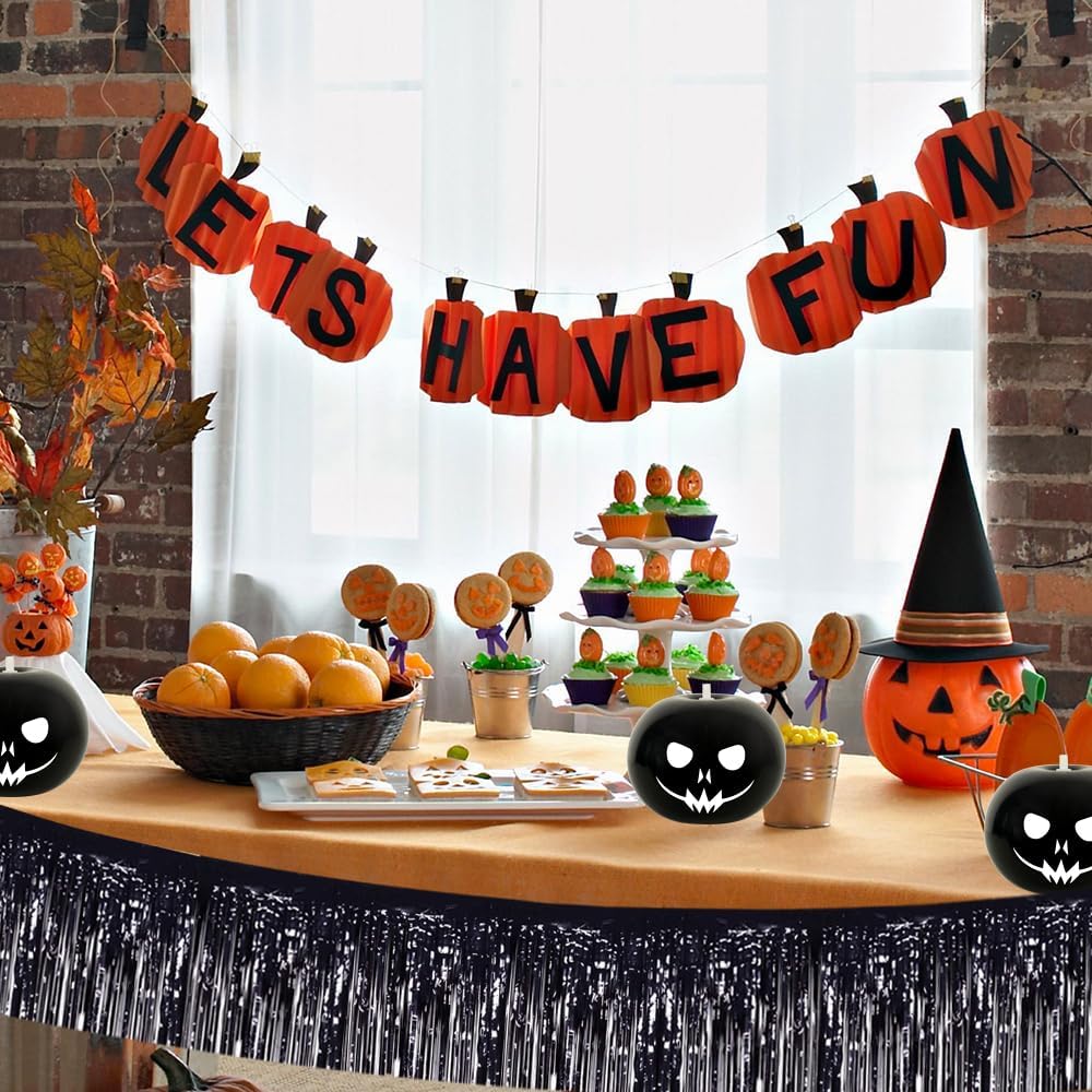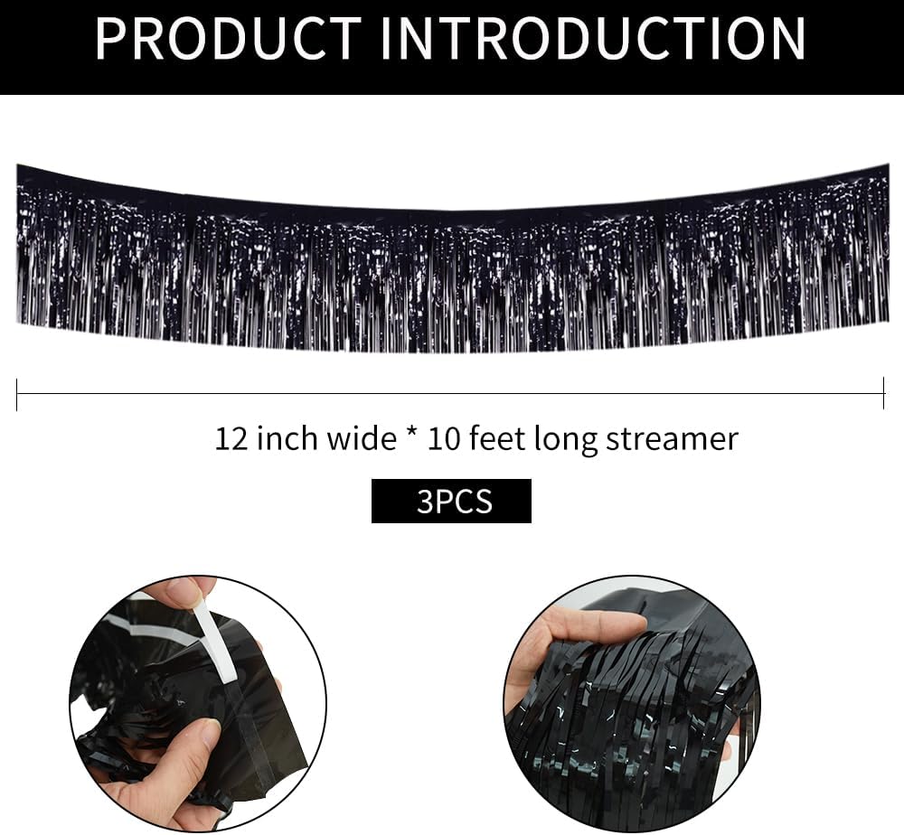 BEISHIDA 3 Packs Metallic Foil Fringe Garland Black Wall Hanging Tinsel Fringe Banners for Car Floats Halloween Bridal Shower Wedding Birthday Easter Graduation Holiday Party Decoration(30 Feet)
