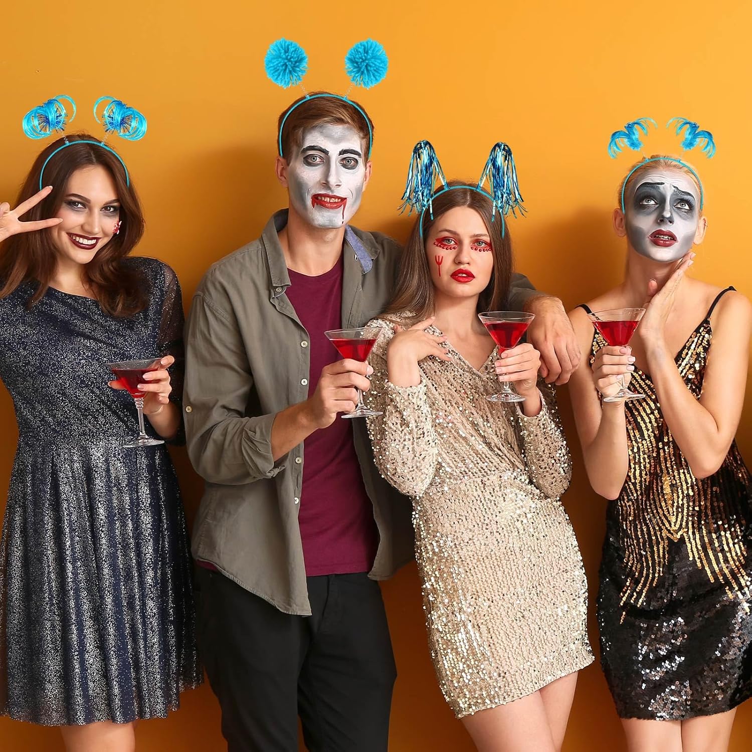 Censen 12 Pcs Halloween Pom Pom Party Headbands Tinsel Ponytails Spirit Head Bopper Headwear for Christmas Birthday Holiday