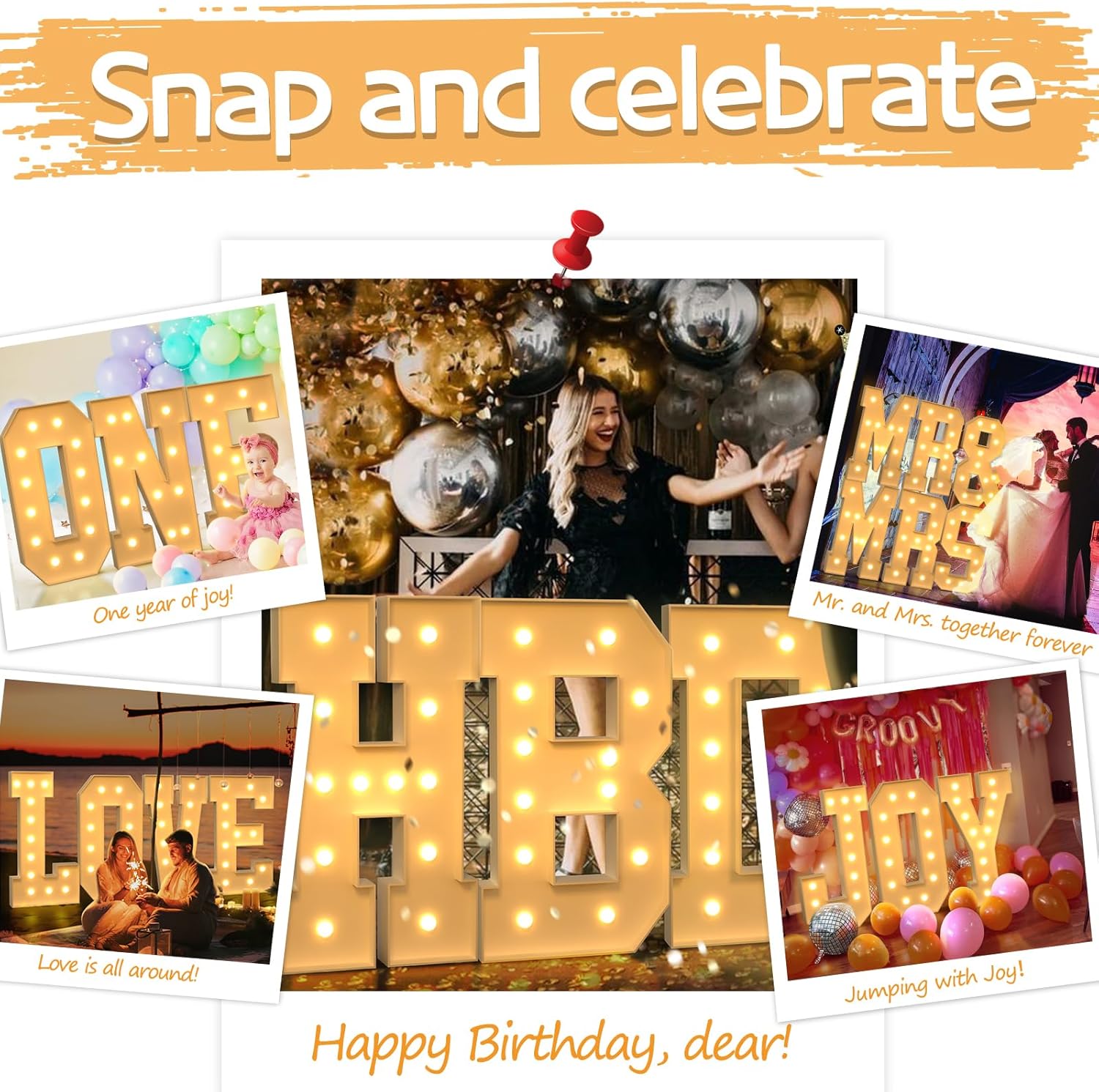 • Highlight of your Party: Marquee light up letters are 4 feet tall / 48 inches / 120 cm. Large light up letters in blocked font design will serve as the attractive finished point of your birthday party, graduation party, engagement, proposal, anniversary, wedding decorations, baby shower event decors