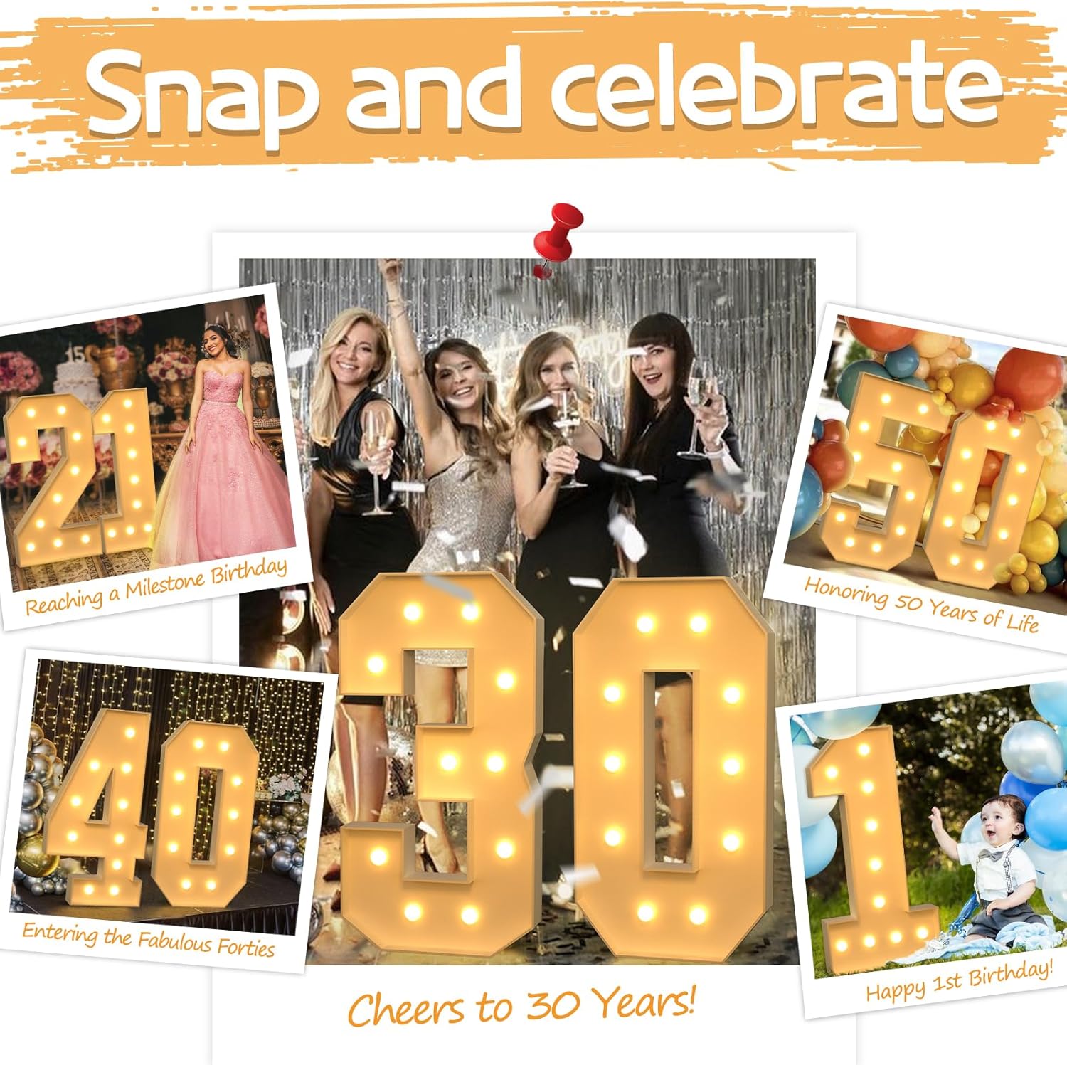 • Highlight of your Party: Light up numbers are 4 feet tall / 48 inches / 120 cm. Large light up numbers in blocked font design will serve as the attractive finished point of your birthday party, graduation party, anniversary