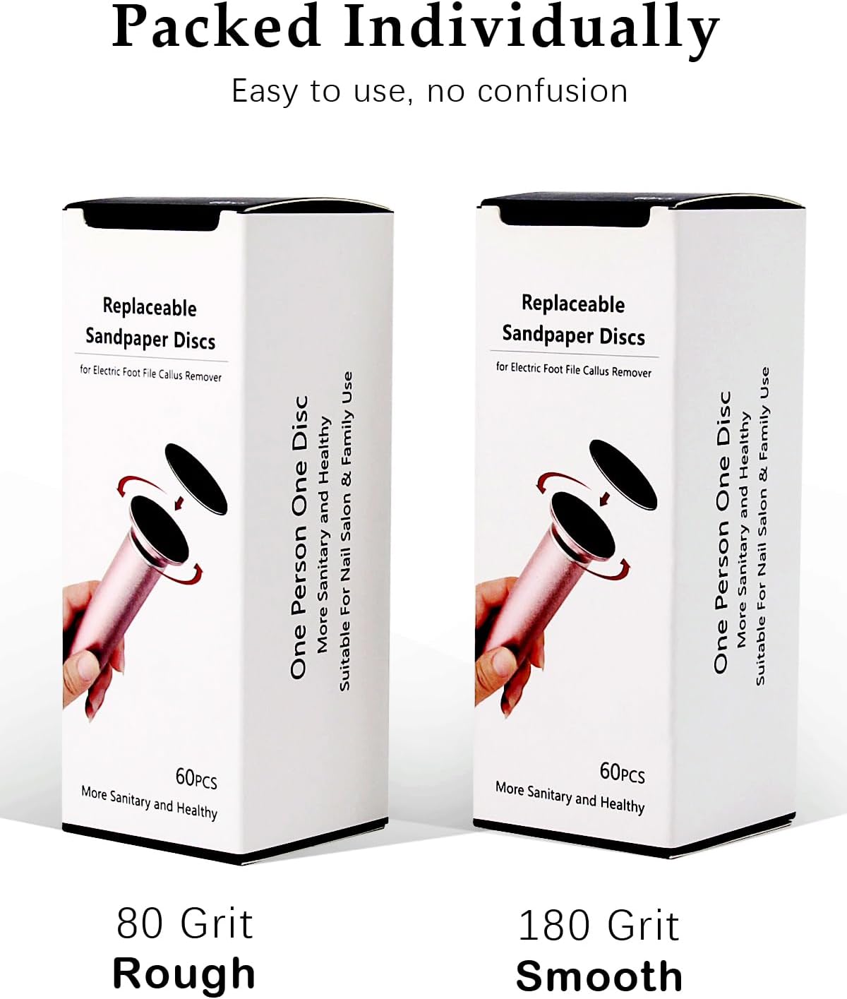 120pcs Foot File Sandpaper Discs Refill for Electric Callus Remover Dead Skin Removal (60pcs Rough 80 Grit + 60pcs Smooth 180 Grit)