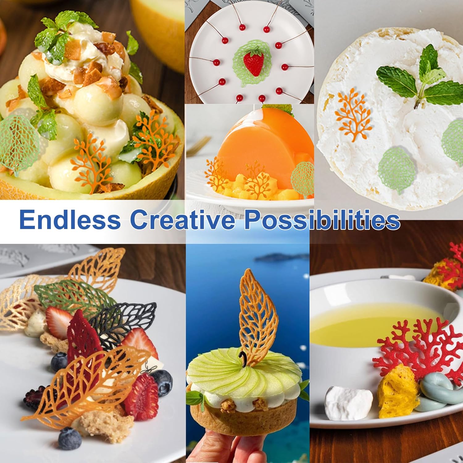 • Silicone Leaf Molds: 5 different pattern quilted leaf chocolate molds coral branch leaves fondant lace pad, 1 dough scraper and 1 silicone spatula; This silicone baking mold set is well made and detailed
