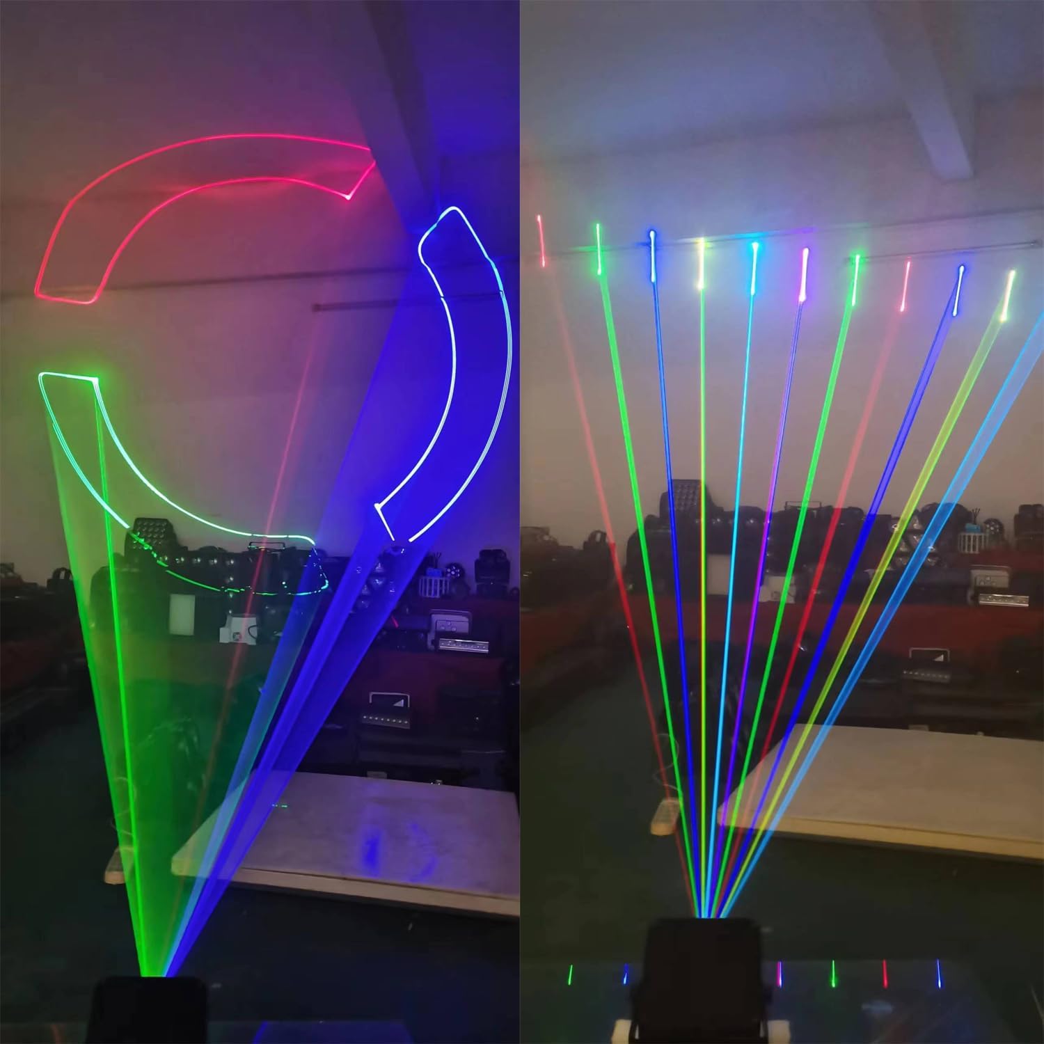 JUNMAN 2W 2000mw RGB Full Color Animation Stage Effect Light DJ Disco Stage Beam Lights for Party Wedding Event Lighting Show