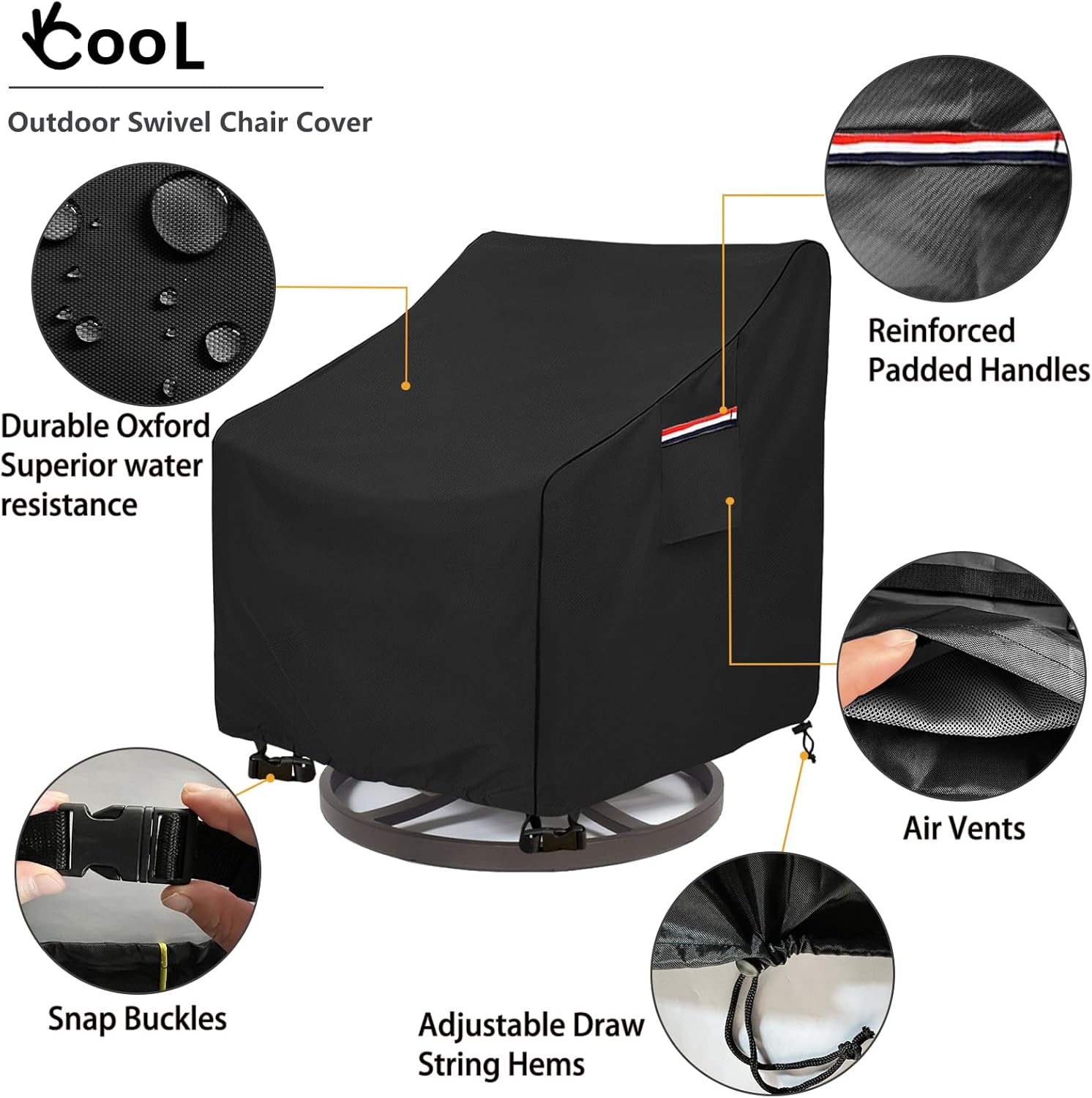 Okcool Outdoor Swivel Chair Cover 2 Pack,Outdoor Furniture Patio Chair Covers Waterproof Clearance,(33"W x 35"D x 38.5"H) Outdoor Lawn Patio Furniture Covers,Black