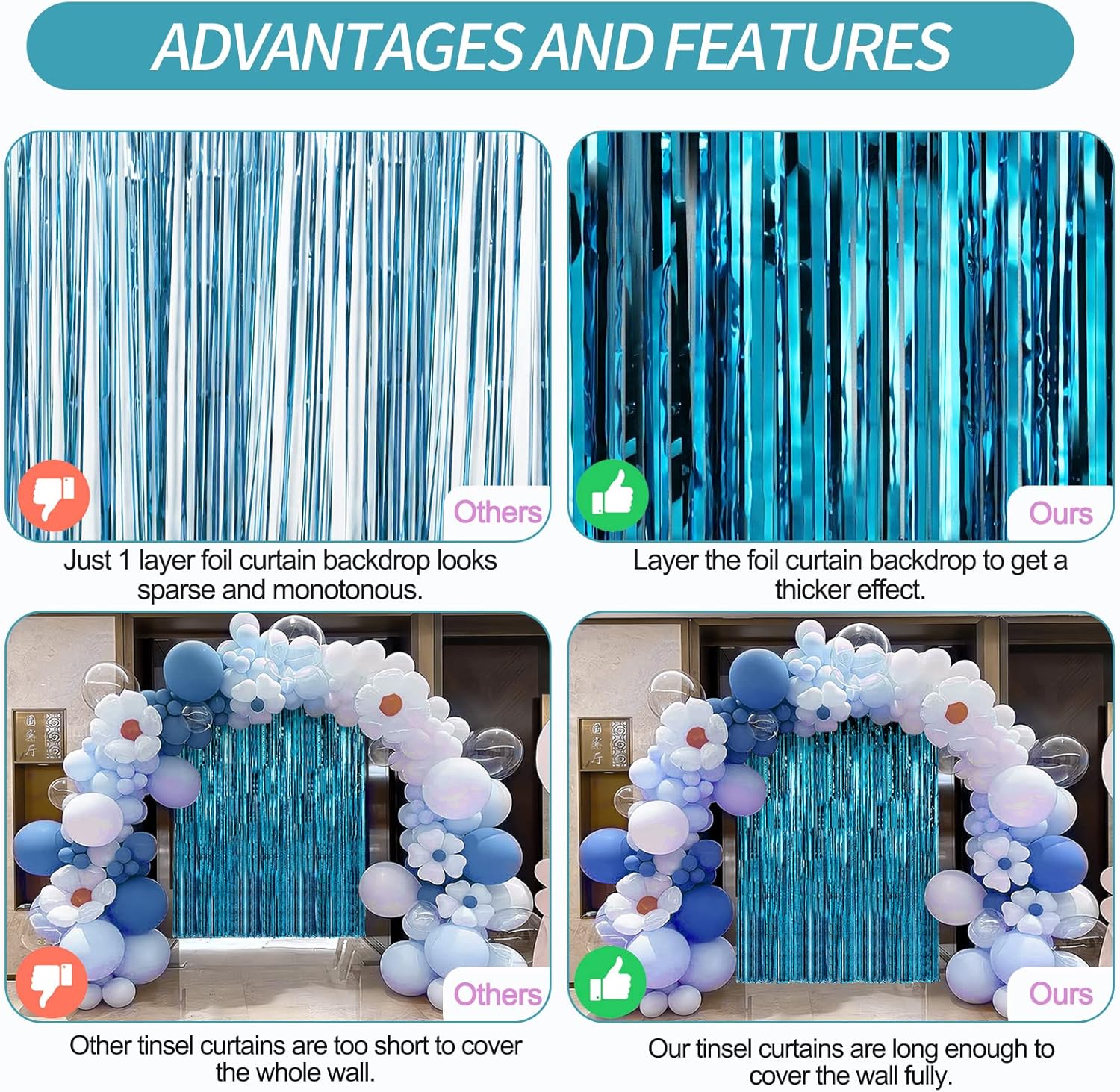 Crosize 4 Pack 3.3 x 9.9 ft Foil Fringe Curtains Party Decorations, Blue Tinsel Curtain Backdrop for Parties, Door Streamers, Glitter Streamer Fringe Backdrop for Birthday Decoration (Blue)