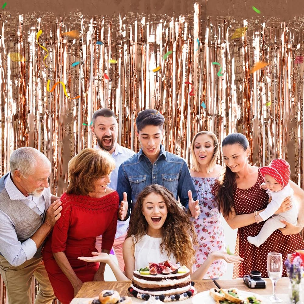 • 2 Pack Rose Gold Party Streamers - The foil curtain streamers is suitable to decorate all the party theme: birthday party, baby shower, wedding party,kids’ birthday party, outdoor party. You can decorate the walls, window, doors with this rainbow crepe paper to make your party interesting.