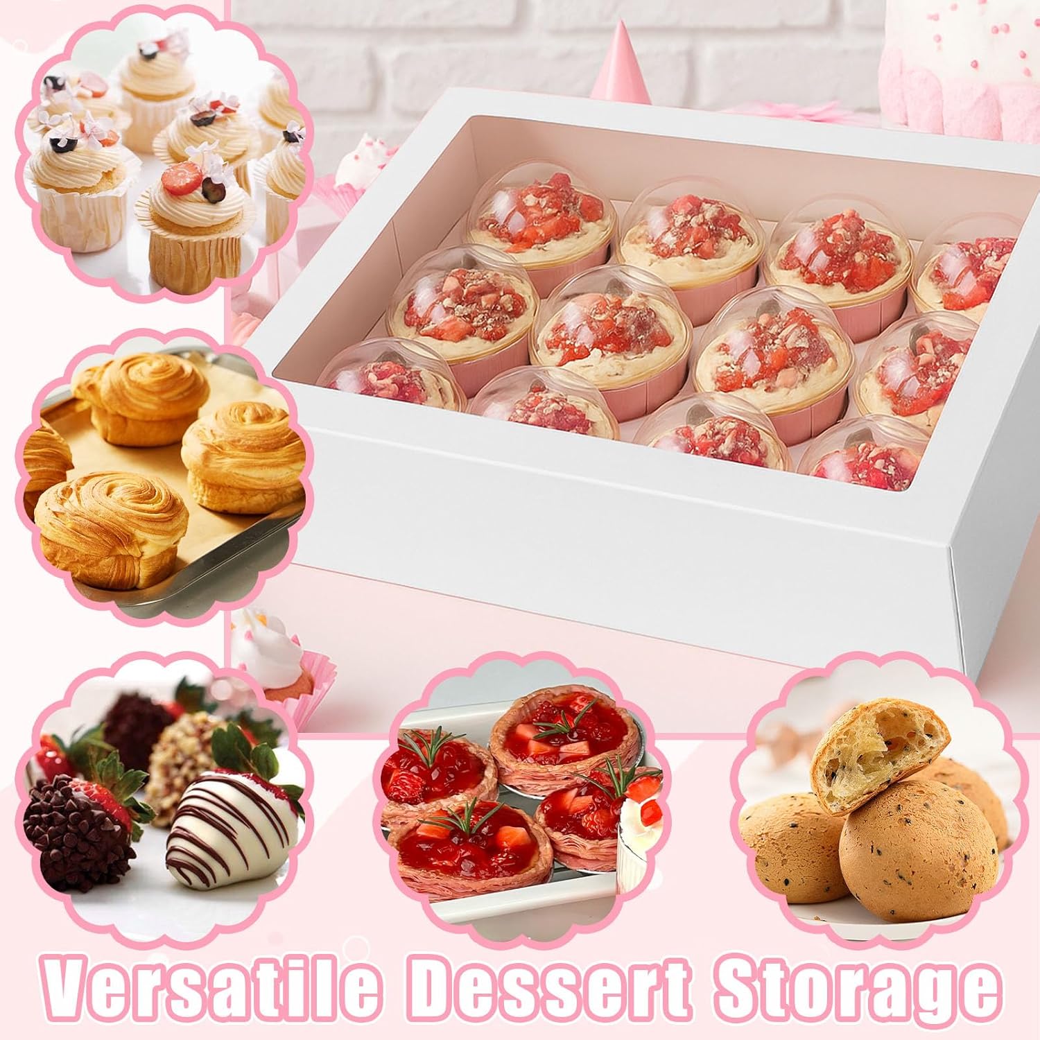 • Multi-Purpose Storage: Each pastry box fits 12 regular-sized cupcakes with the insert in place. Remove the insert to transform the cupcake box into a versatile container for cookies, muffins, mini cakes, mochi, chocolate strawberries, or other pastriesβ€”great for any sweet treat