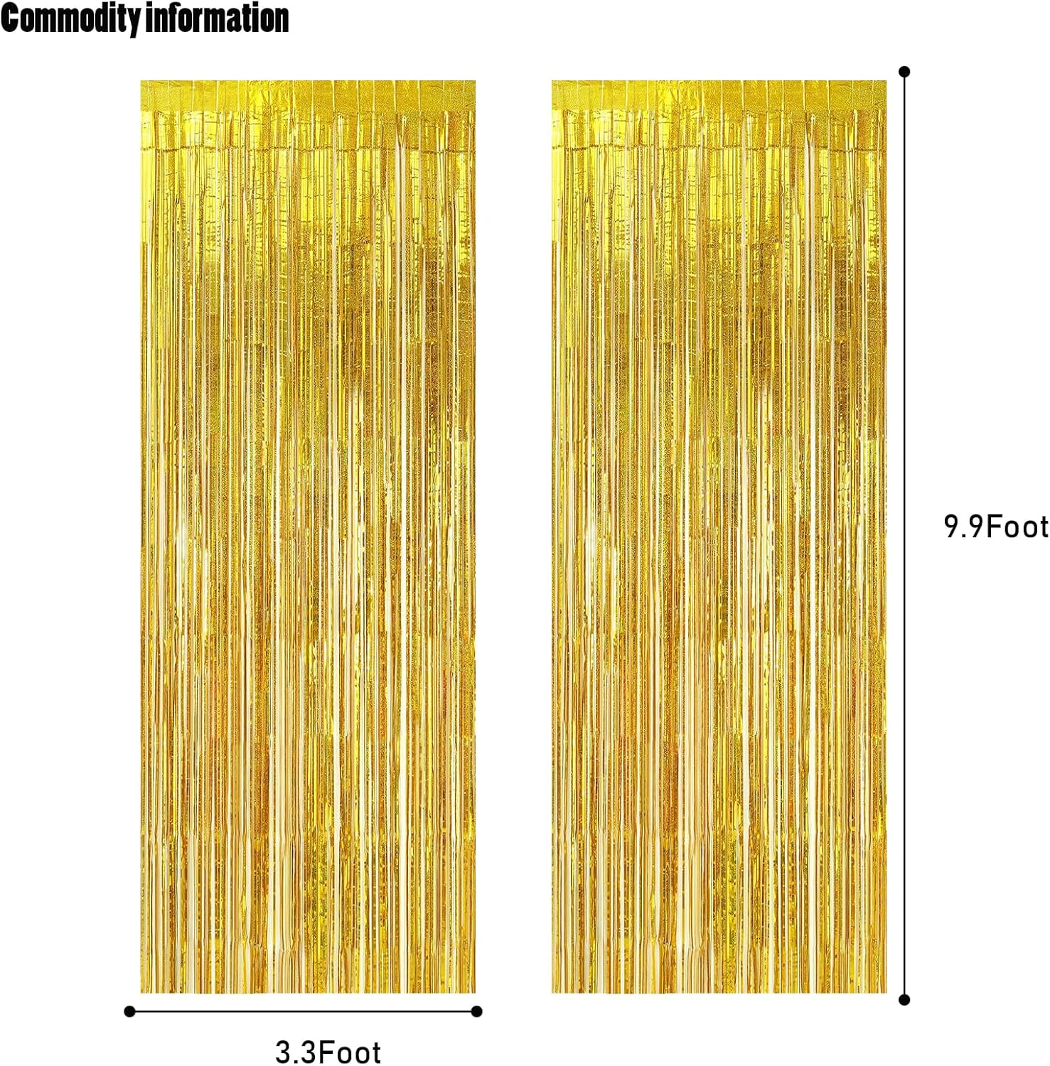 • πŸŽ‰PACKAGE INCLUDED : 2 pack of gold foil fringe curtains, the size of each tinsel curtain is 3.3 ft x 8.2 ft, enough length for hanging on a door or covering a wall fully, suitable for any parties.