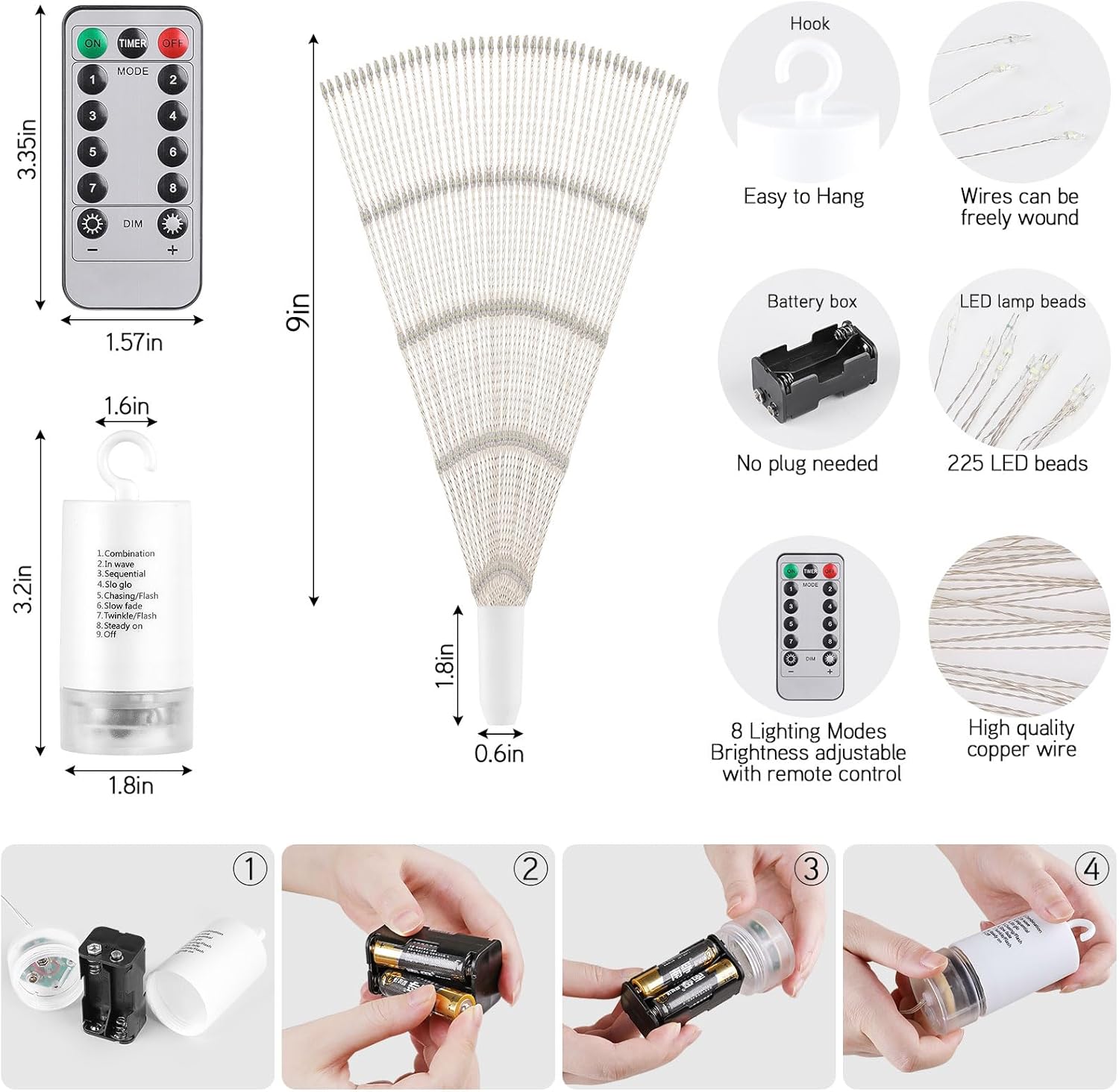 Admitrack Starburst String Lights Christmas Lights, 225 LED 8 Modes Dimmable with Remote Control, Waterproof Copper Wire Decorative Hanging for Party Patio Garden Decoration (White, 4PC)