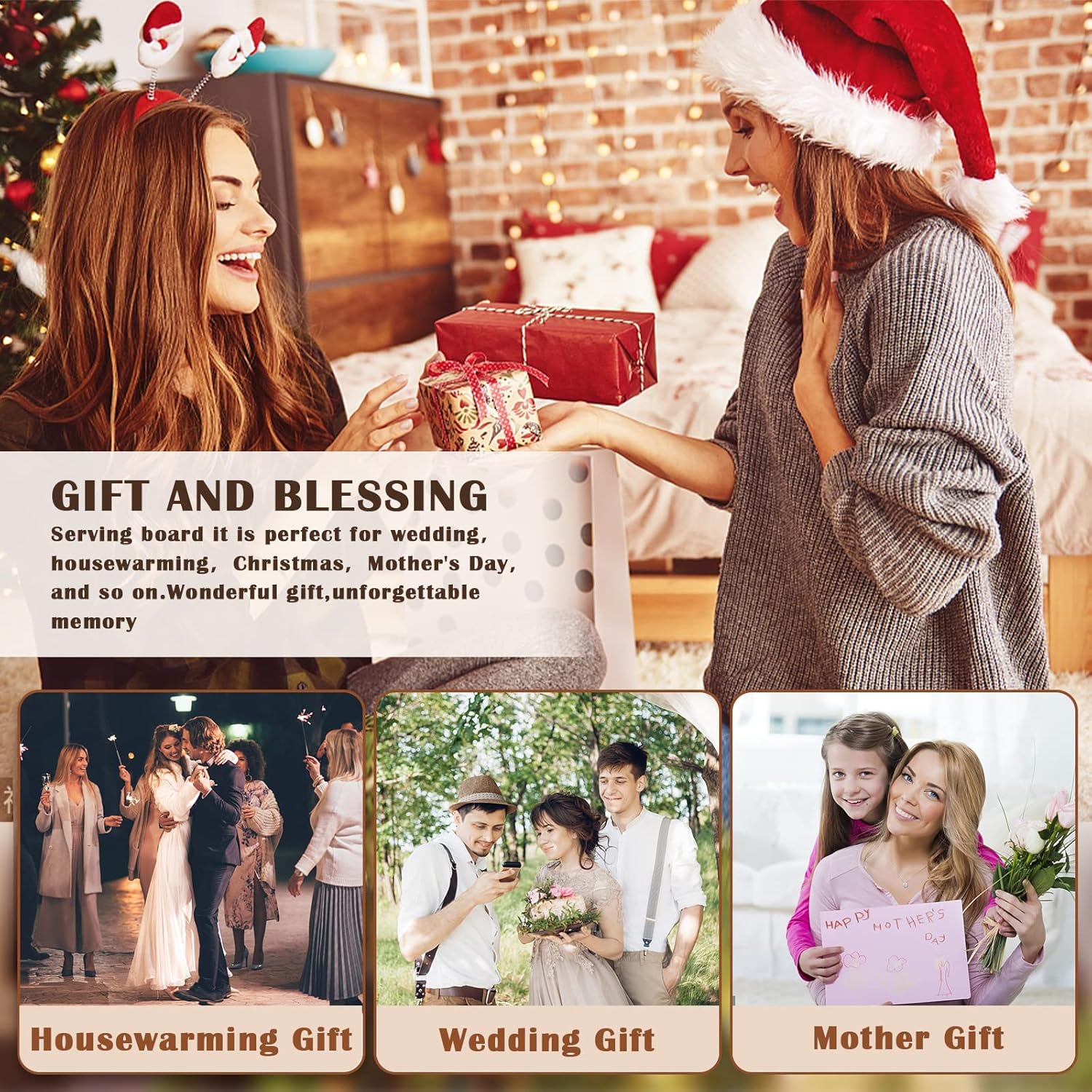 • Widely Occasions: These kitchen cutting boards are perfect for kitchen slicing and dicing, cutting your meat, fruits and vegetables without any trouble efficiently and cleanly, and also can be served for cheese, bread, steaks or charcuterie; Ideal gifts to give them to your friends on Thanksgiving, Christmas, Mother's Day, housewarming, weddings and other occasions.