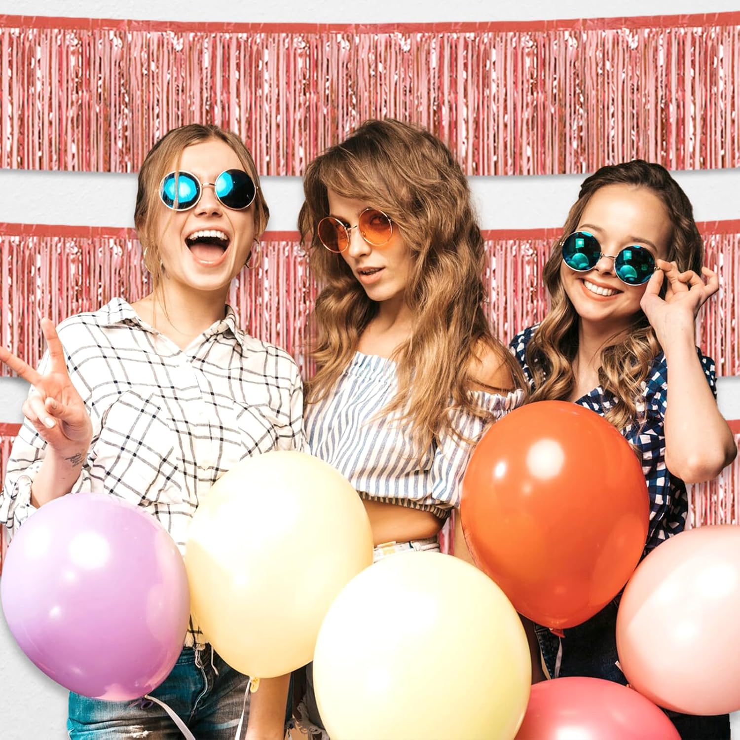 6 Pack 10 Feet Rose Gold Foil Fringe Garland Metallic Tinsel Streamers Banner Wall Hanging Curtain Backdrop for Parade Floats, Birthday, Graduate, Mother's Day, Wedding Party Decoration
