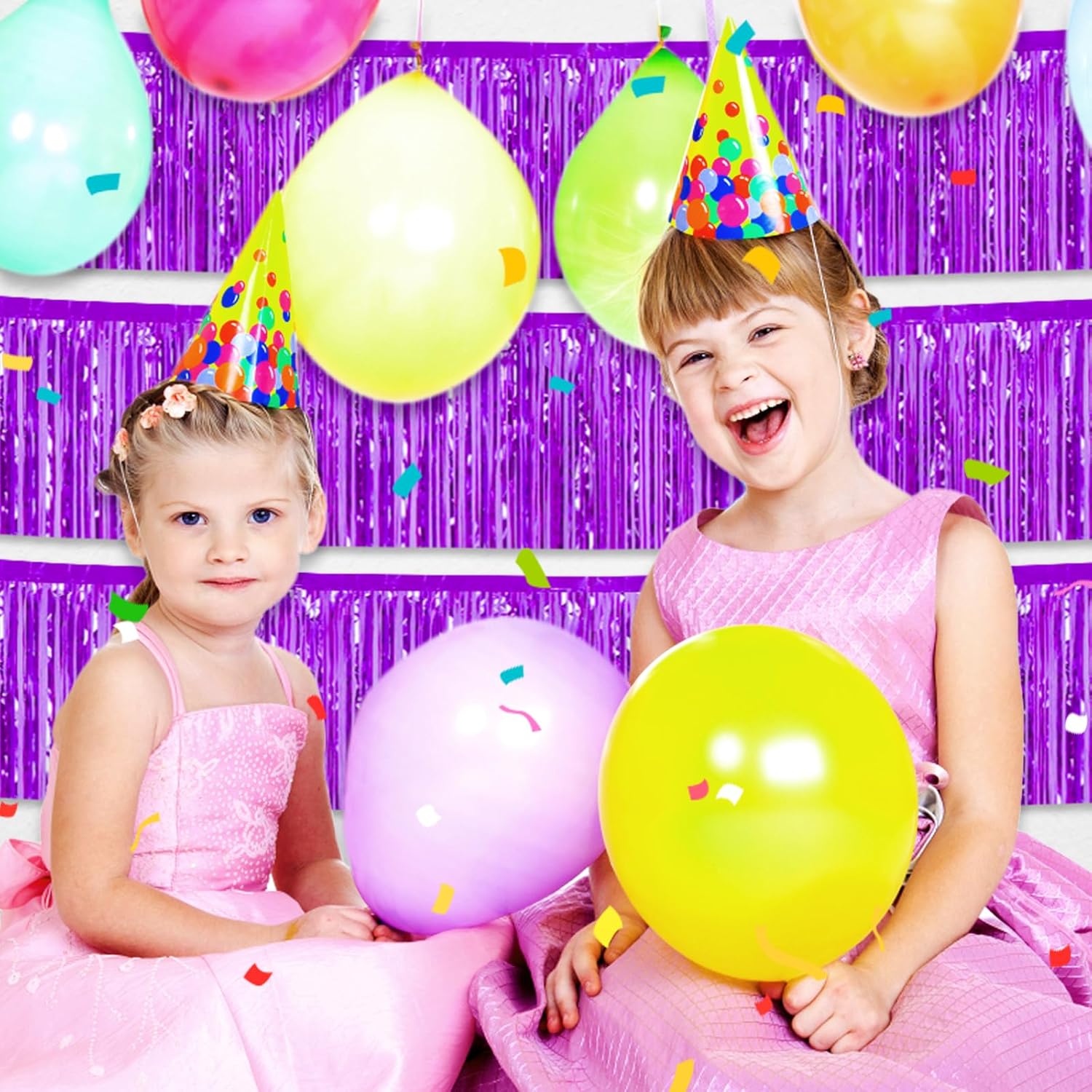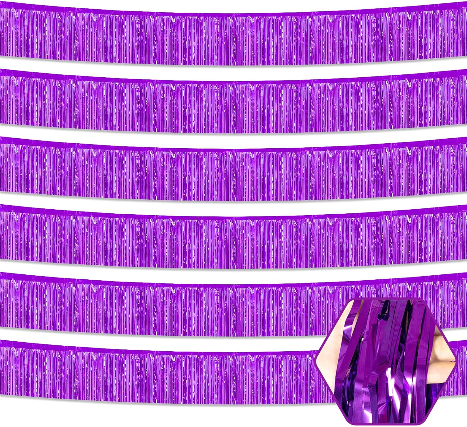 6 Pack 10 Feet Purple Foil Fringe Garland Metallic Tinsel Streamers Banner Wall Hanging Curtain Backdrop for Parade Floats, Birthday, Graduate, Mother's Day, Wedding Party Decoration
