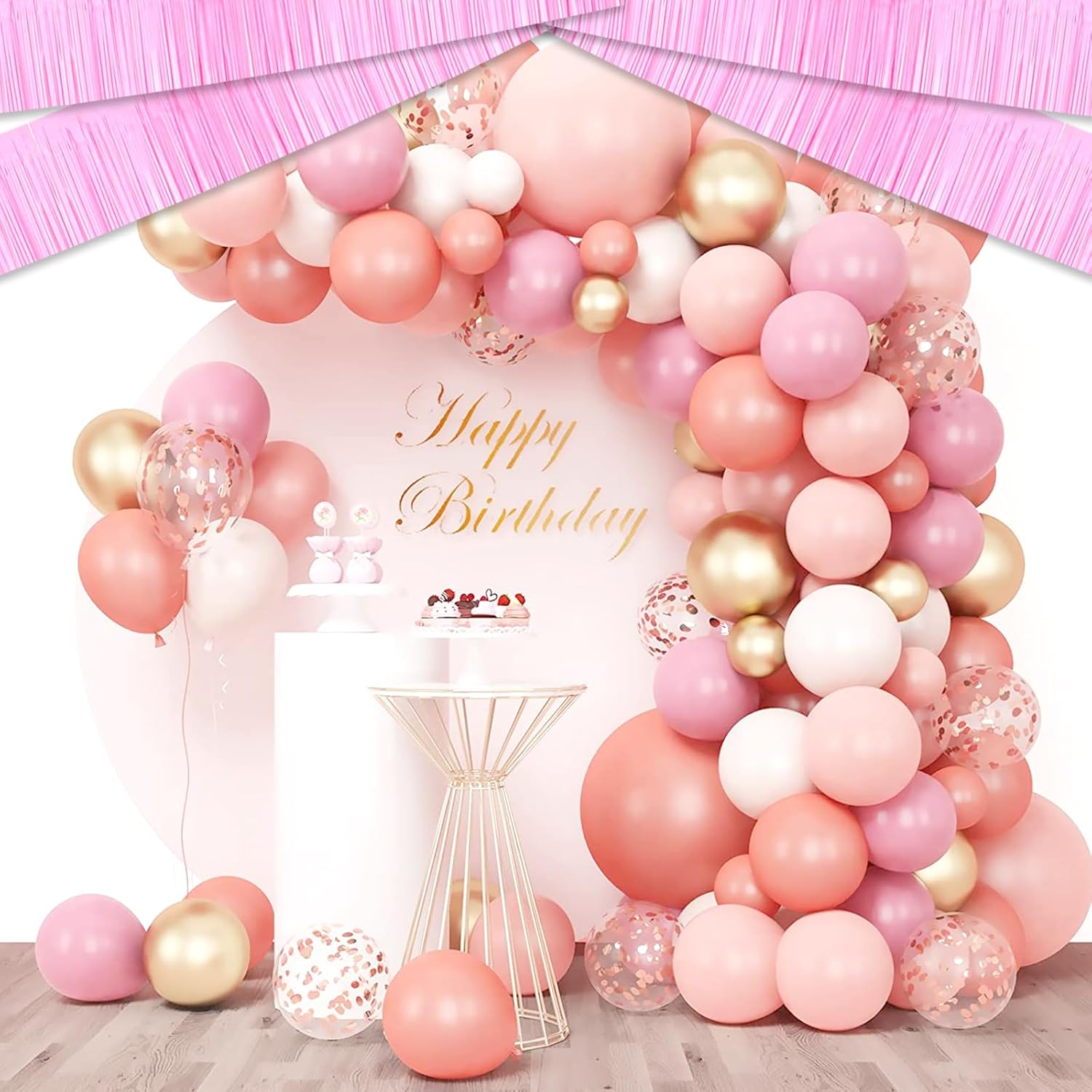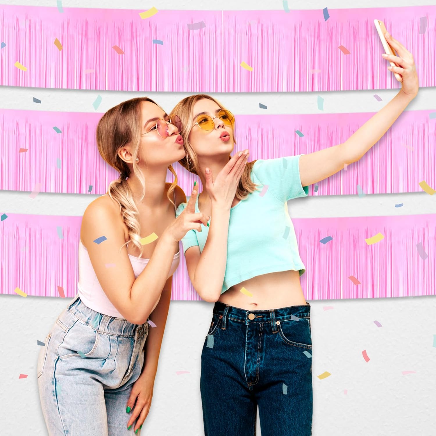 6 Pack 10 Feet Macaron Pink Foil Fringe Garland Metallic Tinsel Streamers Banner Wall Hanging Curtain Backdrop for Parade Floats, Birthday, Graduate, Mother's Day, Wedding Party Decoration