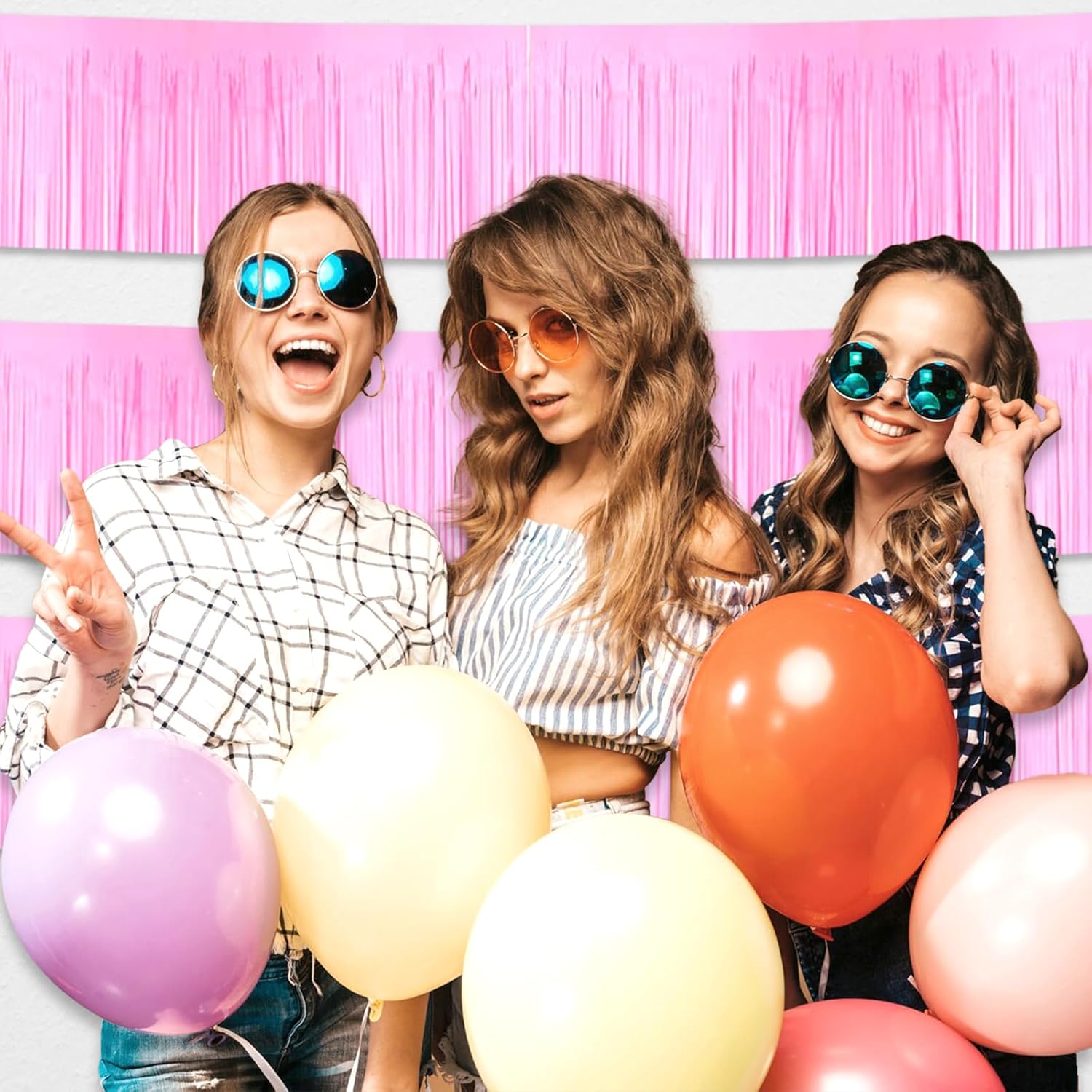 4 Pack 10 Feet Macaron Pink Foil Fringe Garland Metallic Tinsel Streamers Banner Wall Hanging Curtain Backdrop for Parade Floats, Wedding, Graduate, Mother's Day, Birthday Party Decoration