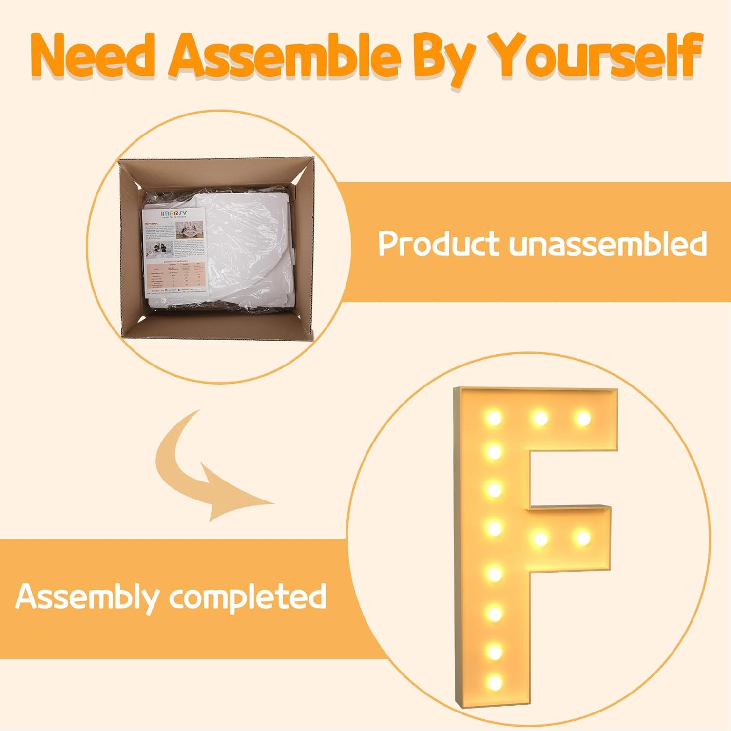• Assembly Required: Our large marquee letters is made from foam board and easy to assemble with our splicing mode. Just follow the numbered instructions to align and insert the bottom plate, and reinforce it with a hot glue gun. Then, you're done!