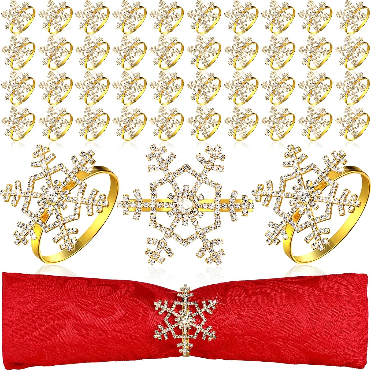 Patelai 48 Pieces Snowflake Napkin Rings Thanksgiving Christmas Napkin Holders Exquisite Household Rhinestone Napkin Rings Set for Christmas Wedding Dinner Party Table Decoration (Gold)