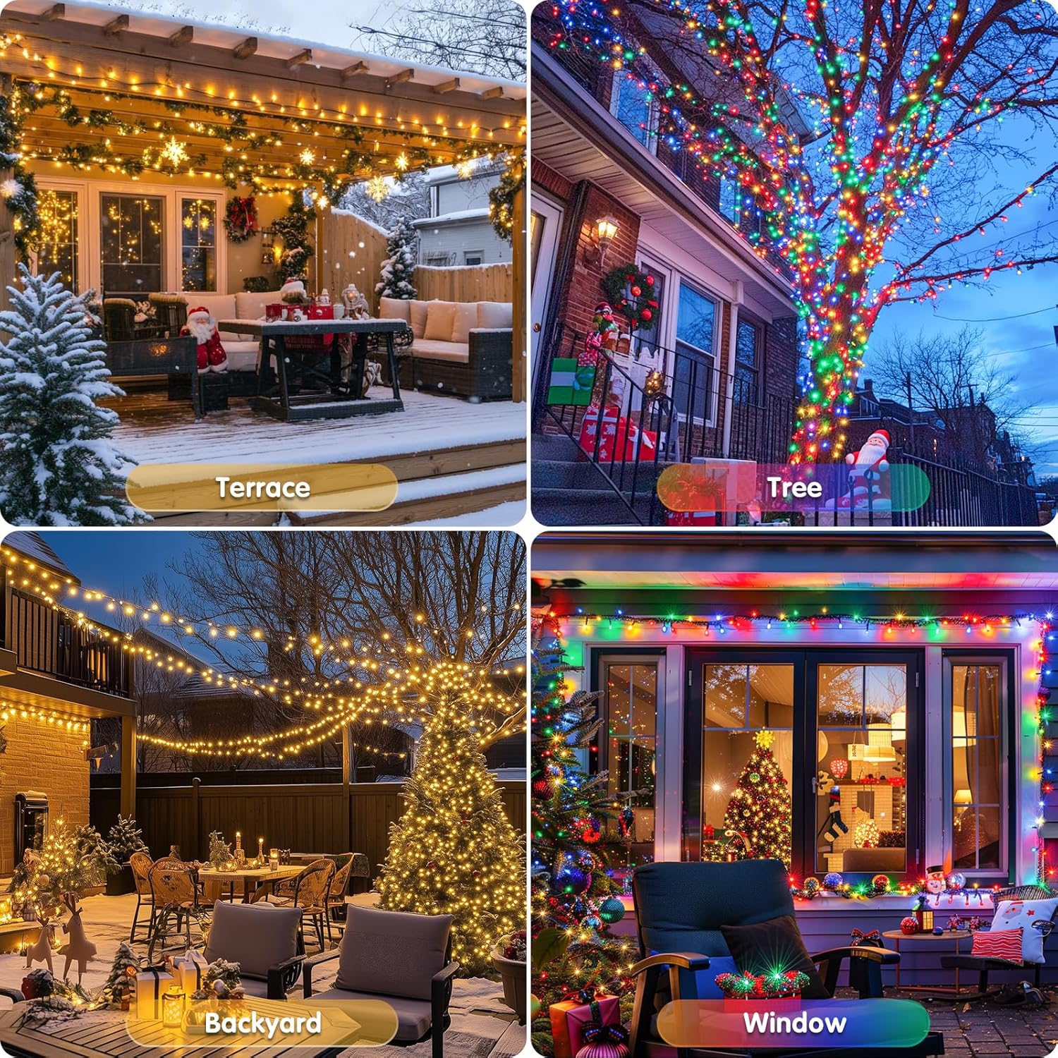 • Waterproof & Safety: We can't tell if it will rain on Christmas, so let's prepare a waterproof outdoor solar Christmas lights. The panic is all someone else's! All components of our lights, including light beads, light wires, and solar panels are IP44 waterproof, so no worries about the weather. Besides, color changing lights are solar powered which avoid short circuits and fires