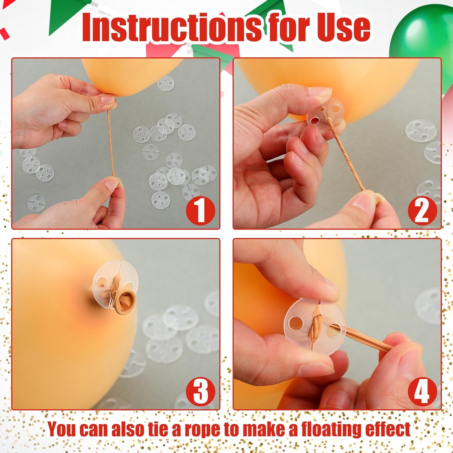 • Simple to Seal: the easy balloon tie tool is easy to operate, you need to wrap the balloon mouth around the clip to secure it in place, 1 balloon clip can only be applied for 1 latex balloon, and the small hole next to the clip can also be tied directly to the balloon string