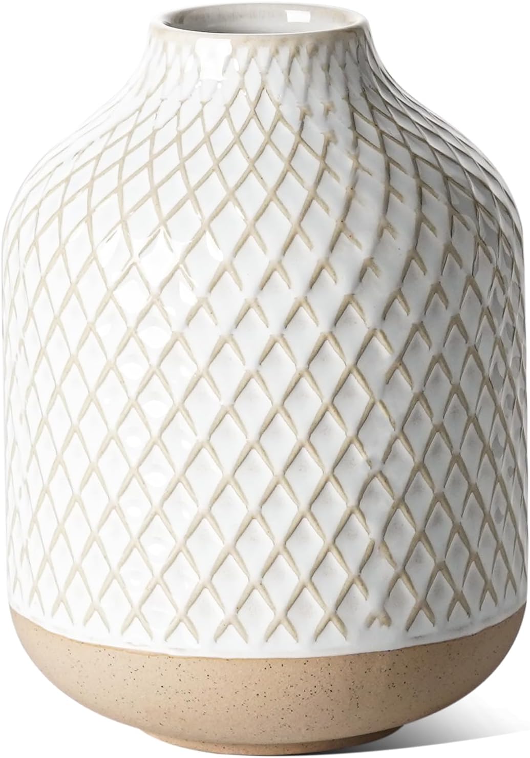 Small Boho Vase for Decor,Rustic Farmhouse Vase for Pampas Grass,Eucalyptus Set and Tiny Stem Flowers,Ceramic Vintage for Centerpieces, 5.3 Inch -Rhombus, Embossment