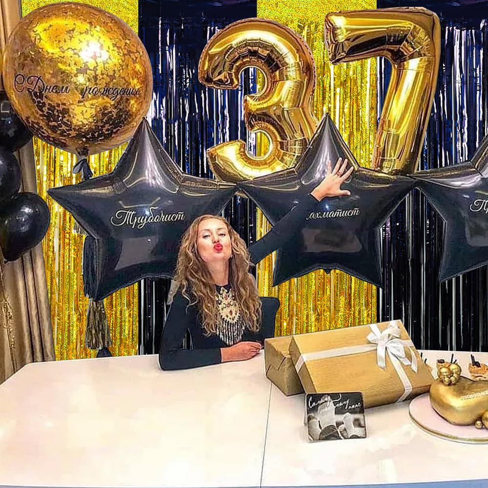 • Extra Large Size Party Streamers Size - The 4 pack streamers curtain(2PCS X Gold Streamers& 2PCS X Black Streamers) size is 8.2Ft(Length) X 3.28Ft(Width). The fringe backdrops are perfect to make an elegant entrance curtain for your party decorations.
