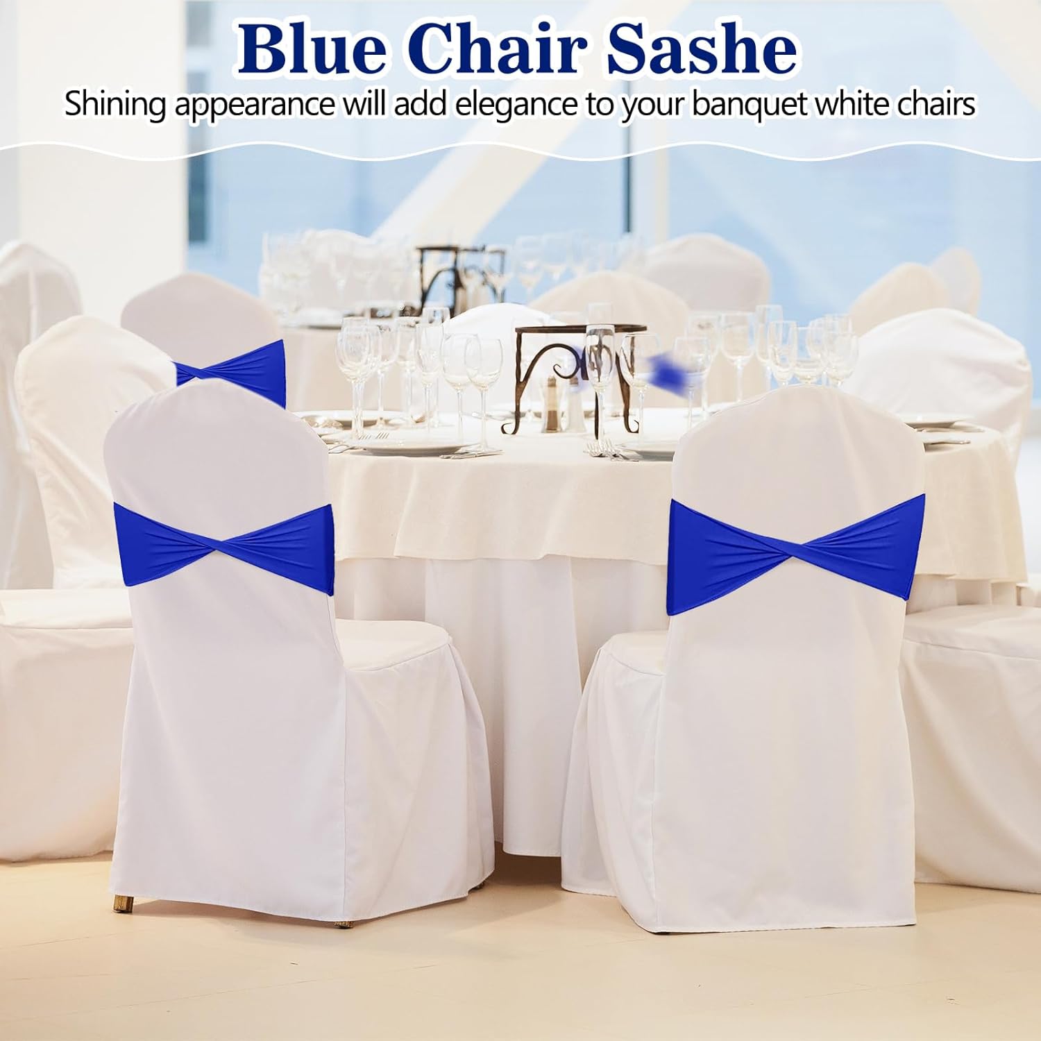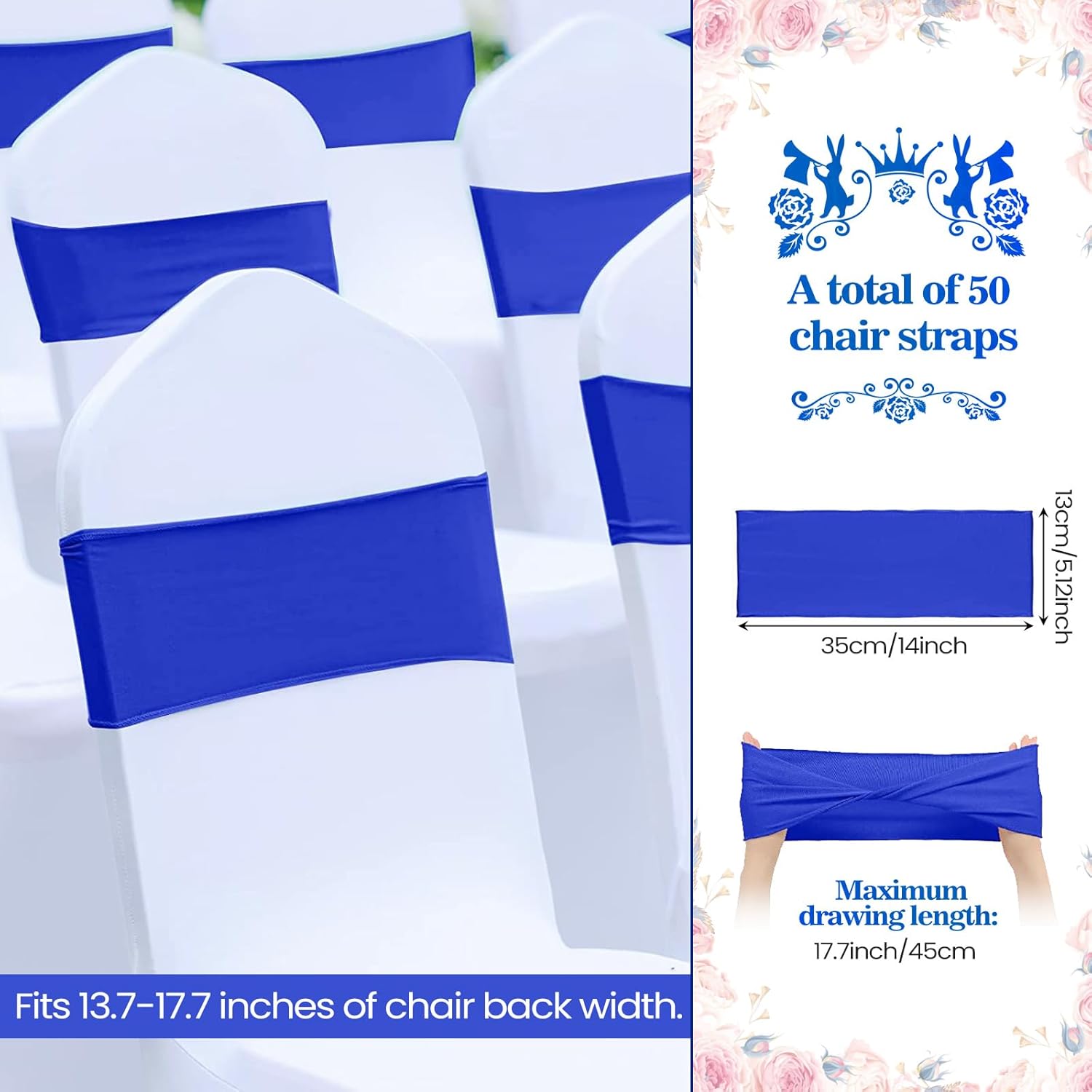 Kinlop 50 Pcs Spandex Chair Sashes Bows Chair Bands Slider Sashes for Covers Elastic Bands Ties Without Buckle Decorations for Wedding Party Events Ceremony Birthday(Blue)