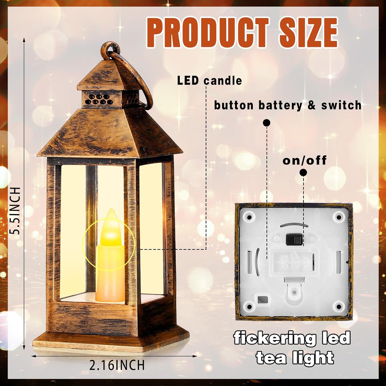 Hoolerry 24 Set Halloween Mini Lanterns with LED Candles 5.5'' Decorative Hanging Small Vintage Lantern Centerpiece Battery Powered for Wedding Table(Retro)