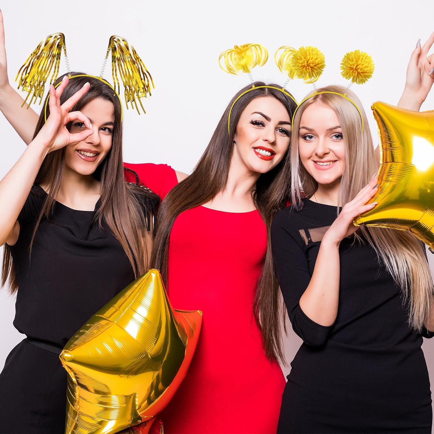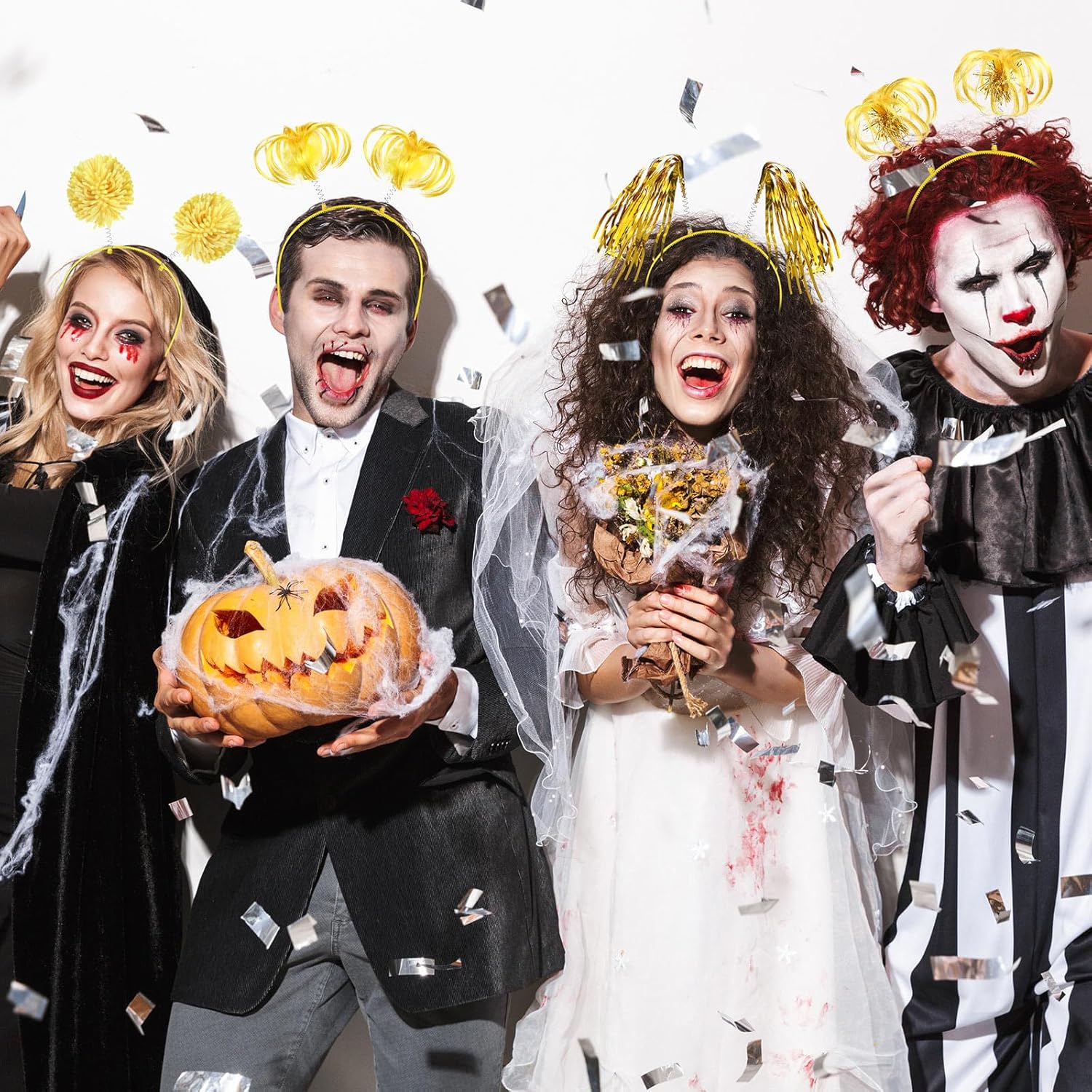 Censen 12 Pcs Halloween Pom Pom Party Headbands Tinsel Ponytails Spirit Head Bopper Headwear for Christmas Birthday Holiday