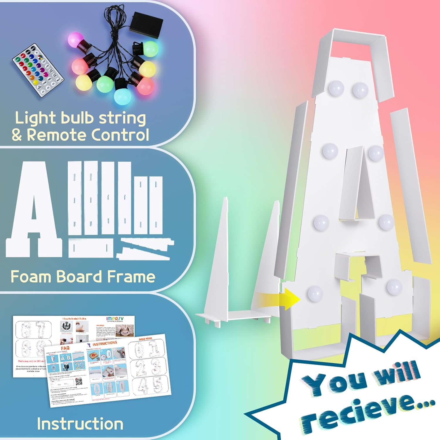 imprsv 3FT Colorful Marquee Light Up Letters A, 18 Colors Light Up Letters Alphabet Sign with Remote, Marry Me Sign, Large Letter for Birthday Engagement Anniversary Wedding Party Decor