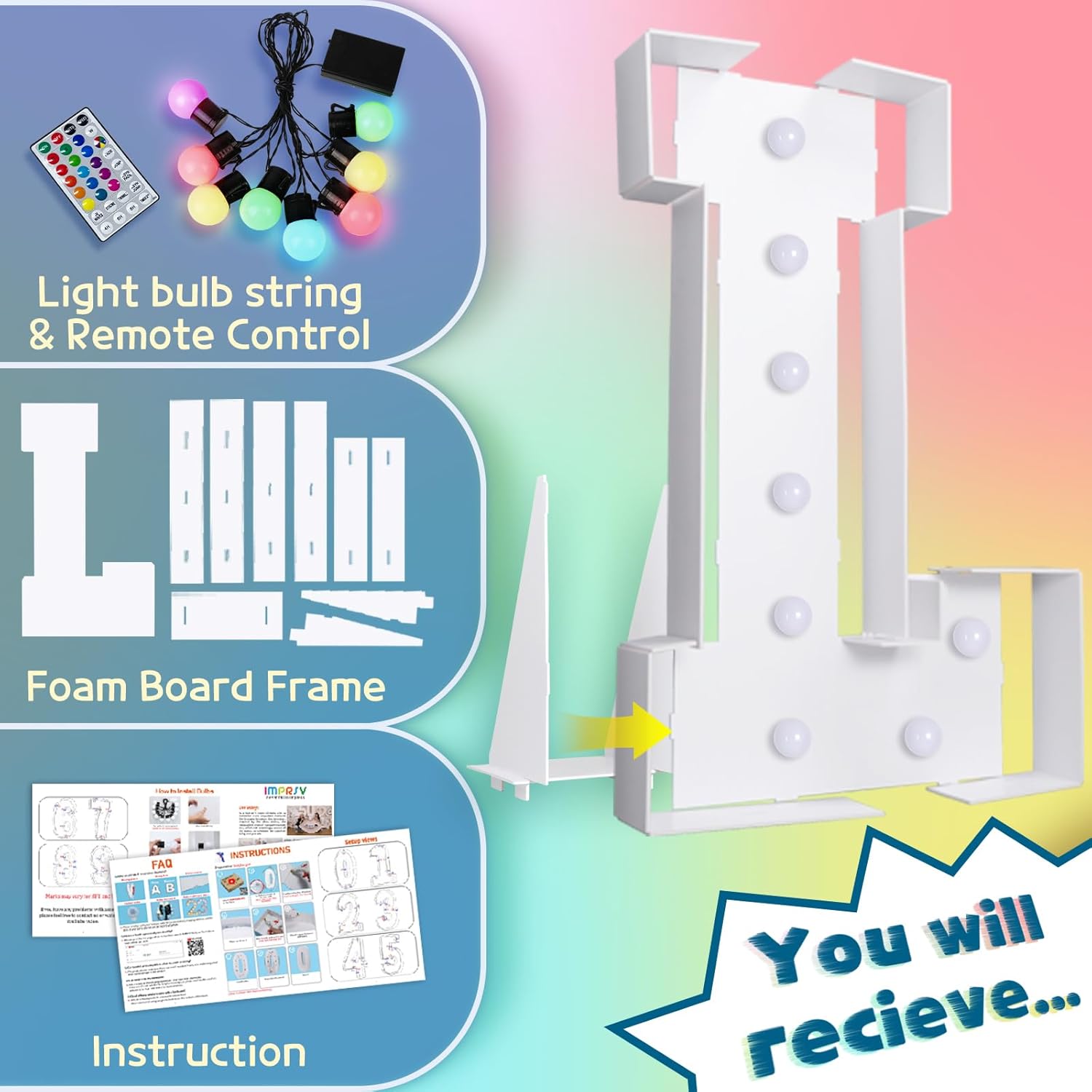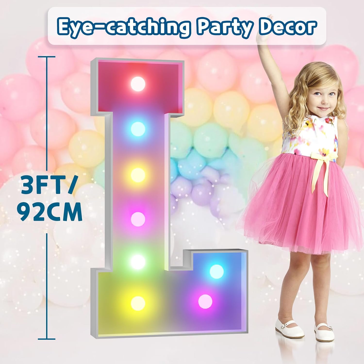 imprsv 3FT Colorful Marquee Light Up Letters L, 18 Colors Large Light up Letters Alphabet Sign with Remote, Big Marry Me Sign, Birthday Party Decorations Baby Shower Anniversary Wedding Decoration