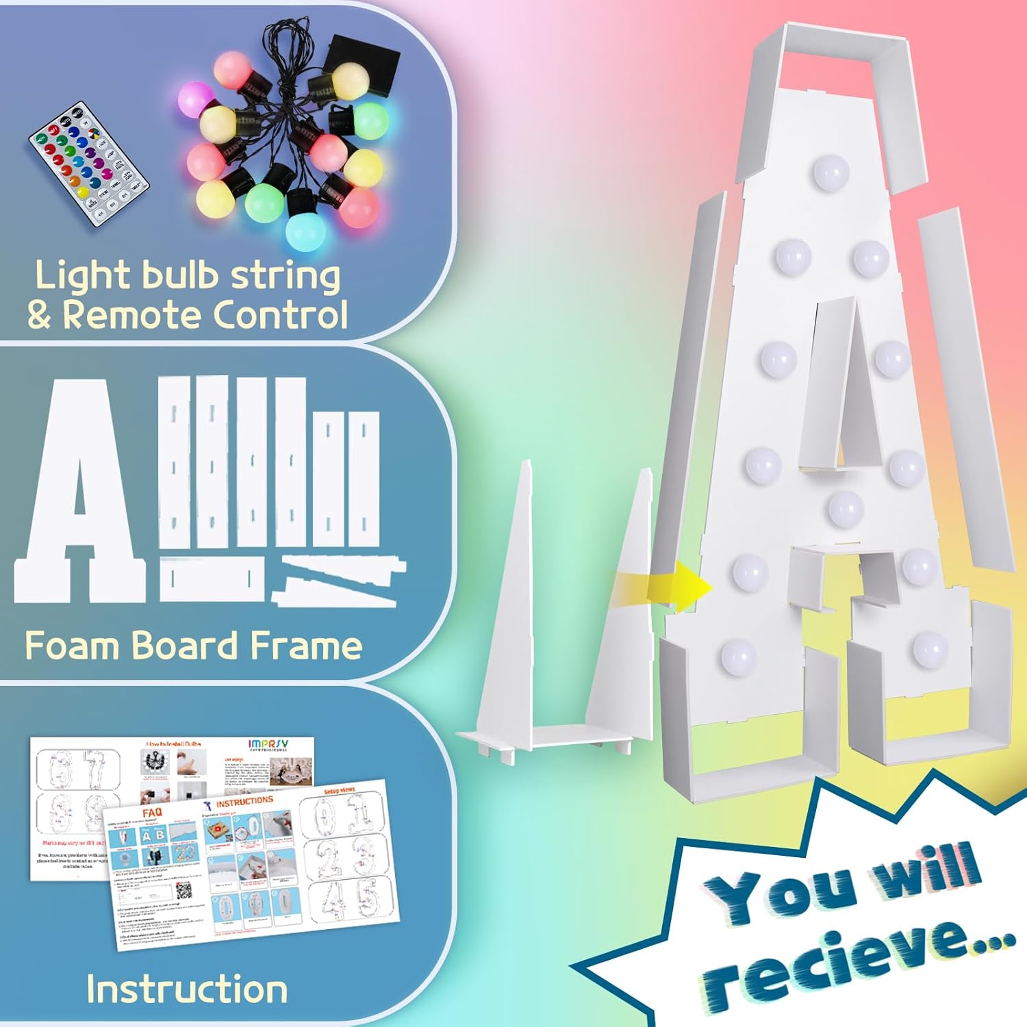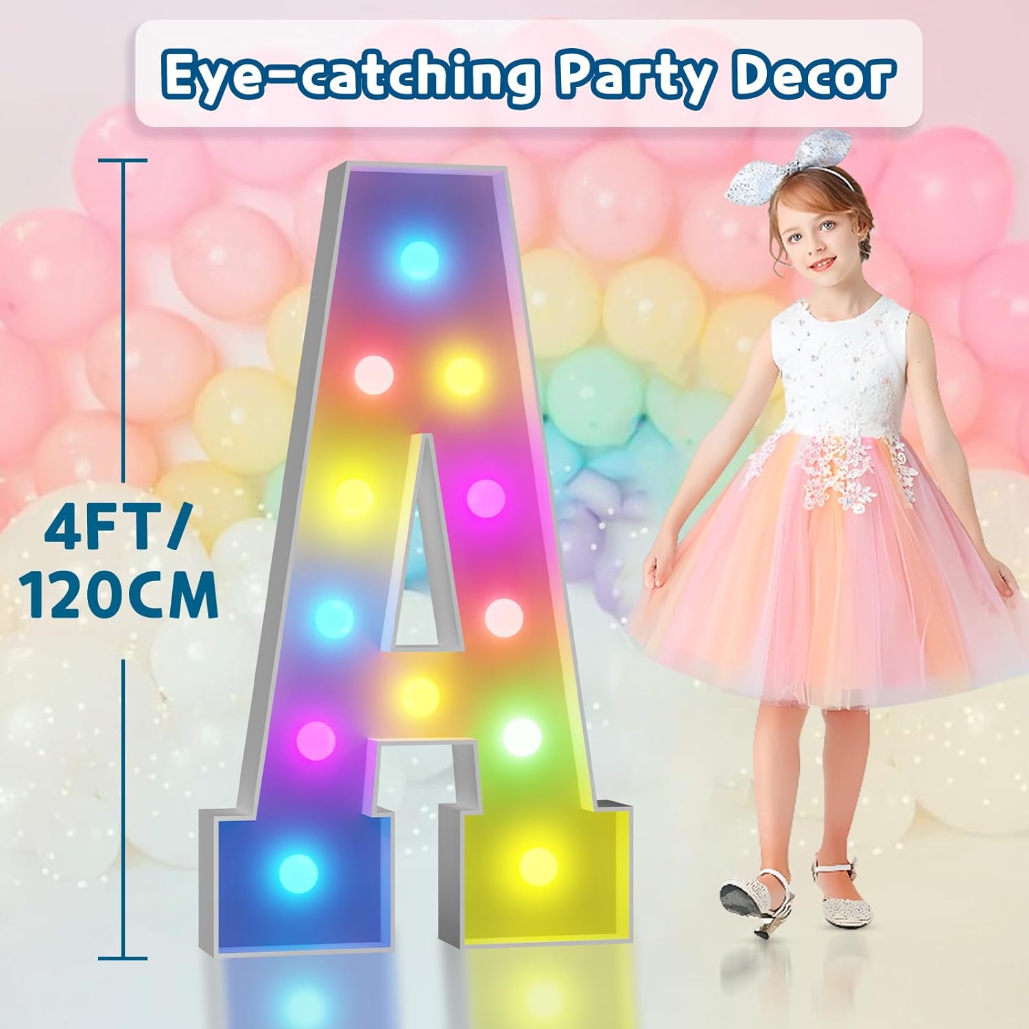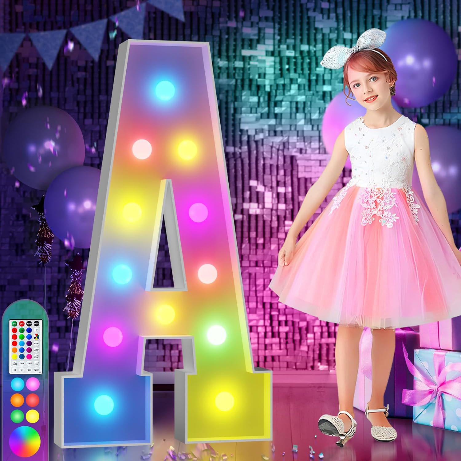 imprsv 4FT Colorful Marquee Light Up Letters A, 18 Colors Light Up Letters Alphabet Sign with Remote, Marry Me Light Up Sign, Large Letters for Birthday Engagement Anniversary Wedding Party Decor