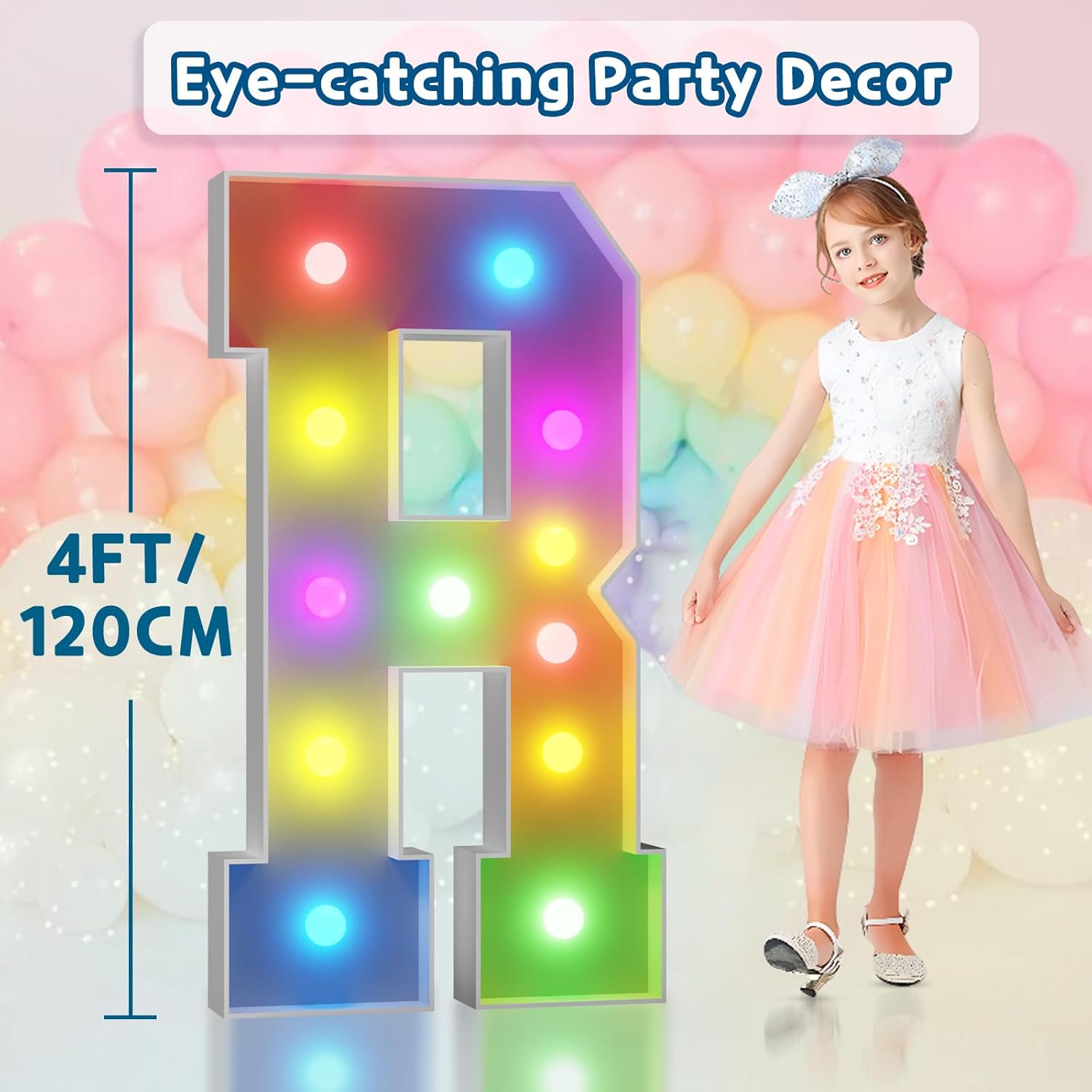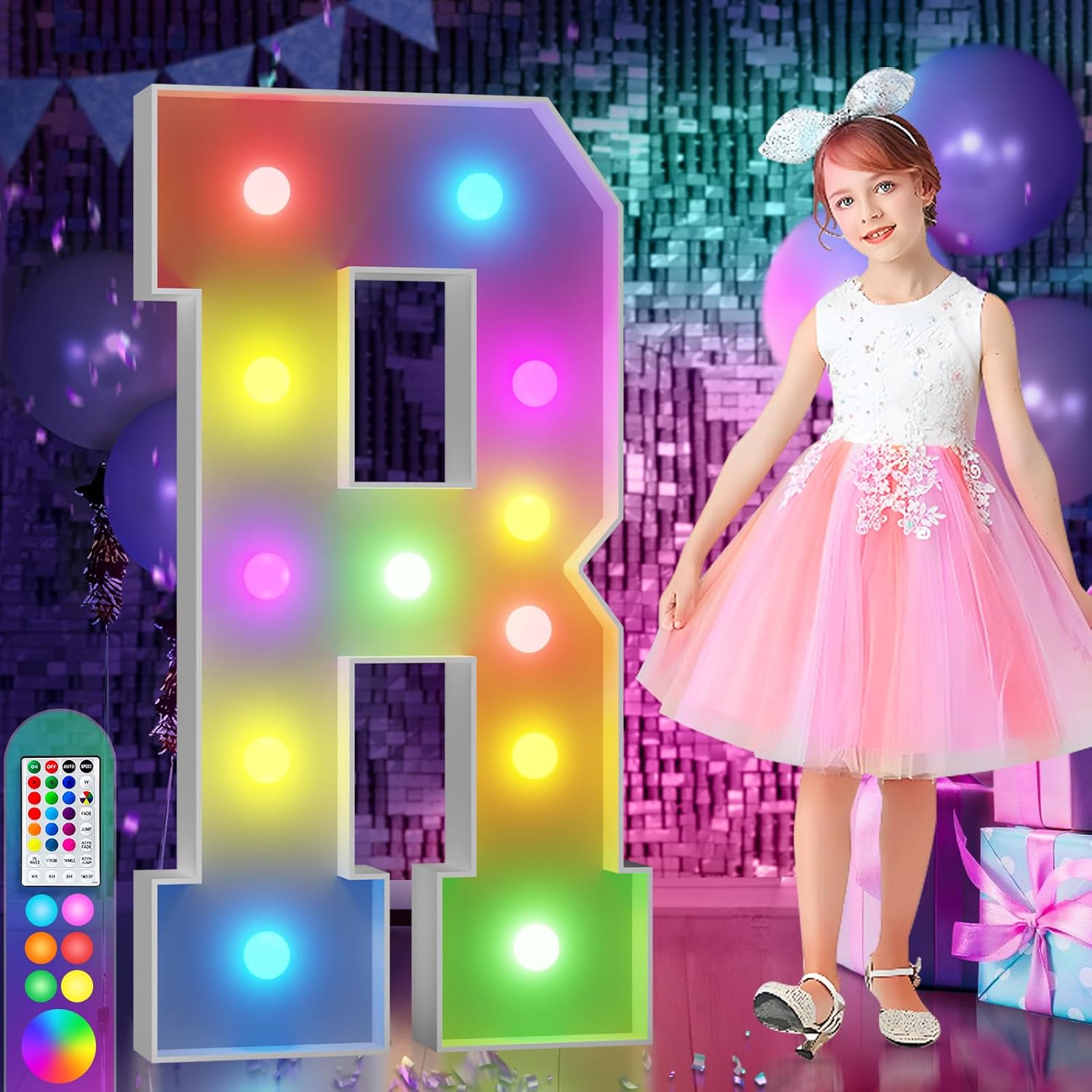 imprsv 4FT Colorful Marquee Light Up Letters R, 18 Colors Light Up Letters Alphabet Sign with Remote, Marry Me Light Up Letters, Large Letters for Birthday Engagement Anniversary Wedding Party Decor