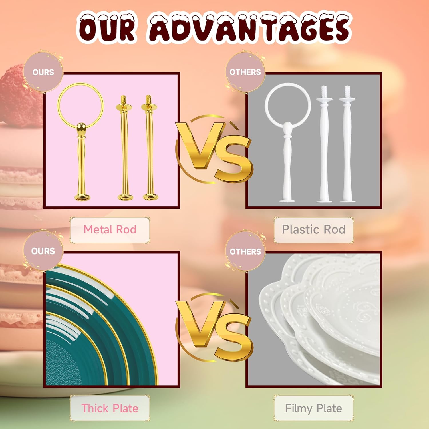 • [Versatile Party Supplies]: Whether you're hosting a themed birthday party, a delightful tea party, a charming baby shower, or a glamorous wedding, this tiered tray stand is perfect centerpiece for any dessert table. Your guests will be delighted as they indulge in the scrumptious treats beautifully displayed on this dessert stand