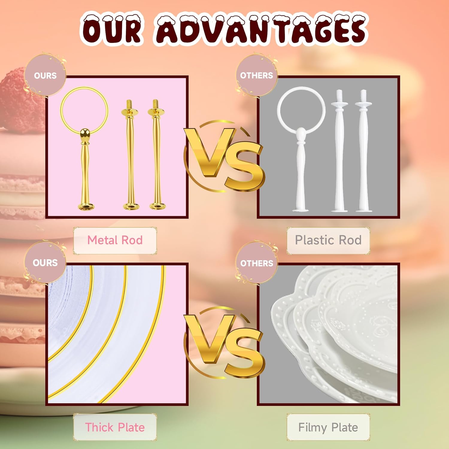 • [Versatile Party Supplies]: Whether you're hosting a themed birthday party, a delightful tea party, a charming baby shower, or a glamorous wedding, this tiered tray stand is perfect centerpiece for any dessert table. Your guests will be delighted as they indulge in the scrumptious treats beautifully displayed on this dessert stand