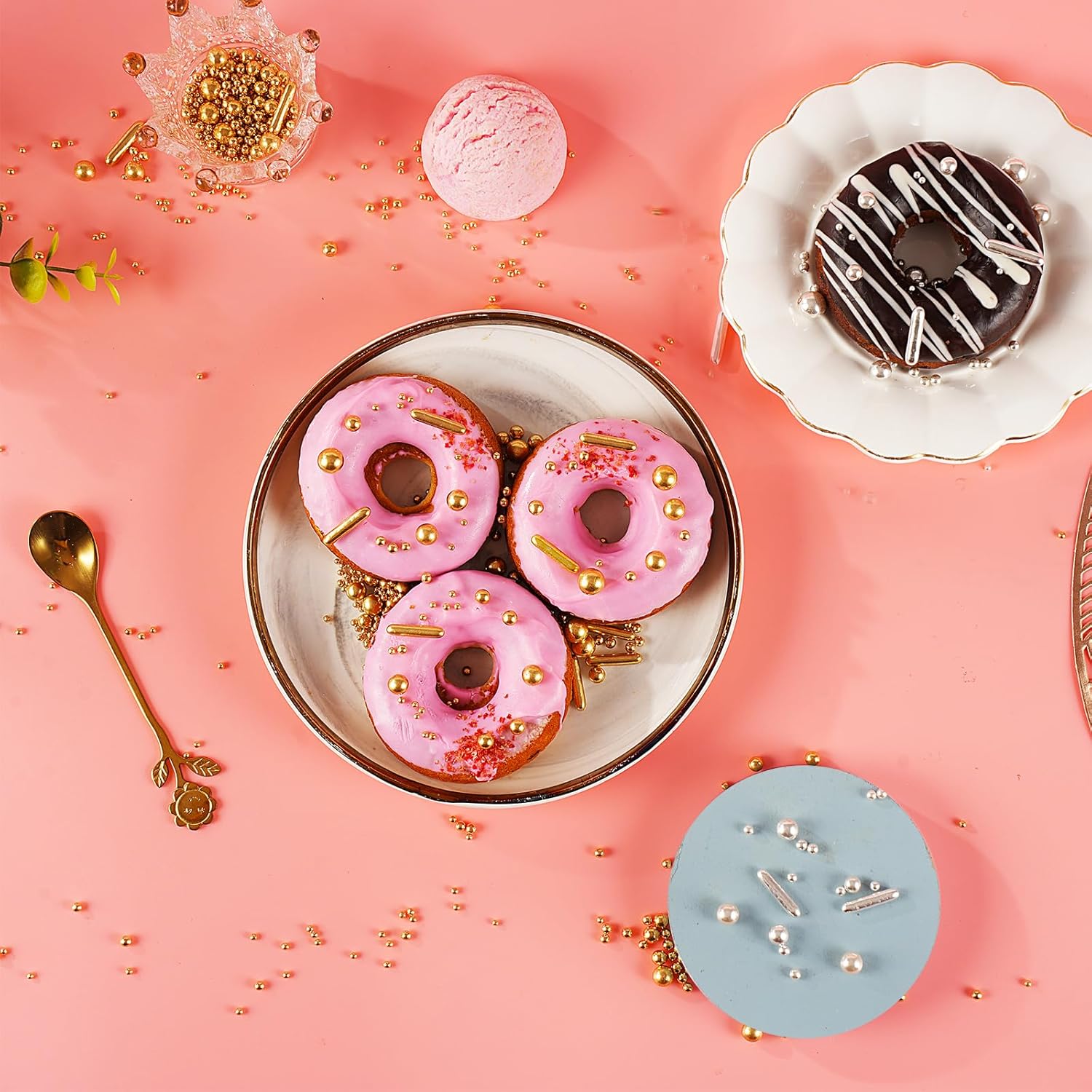 • 【Multi-Purpose】: Gold silver pearls candy decorations is widely used, it can be used for decoration of various foods, such as cakes, cookies, ice cream, cupcakes, donuts, etc. Sprinkles for cake decorating are suitable for weddings, birthdays, Halloween, Christmas and other theme parties, it can make your baking full of festive atmosphere!