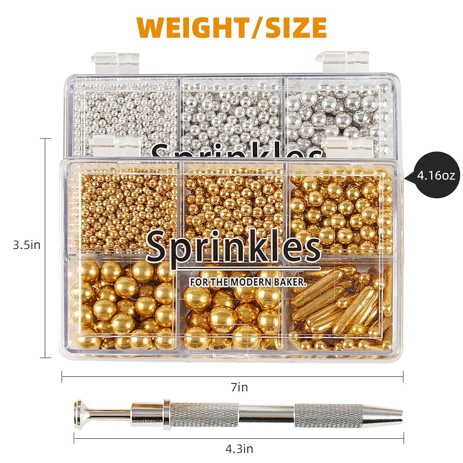 • 【Product List】: You will receive: 1 box of gold cake sprinkles, 118g/4.16oz. 1 box of silver edible pearls, 118g/4.16oz. 1 piece of pearl grabber. Sufficient quantity, convenient and practical, it can meet your daily needs well.