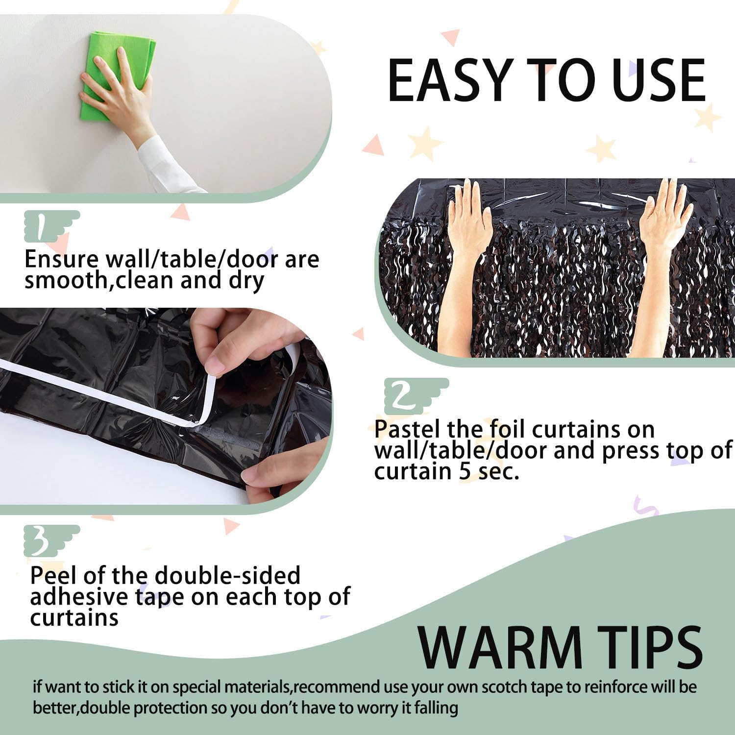 • Package Included: 3 packs black glitter backdrop, the size of 3.3*6.6ft,It's long enough to fit any occasion,Please do not stick the foil curtain on uneven or stained walls to prevent it from falling off!!!