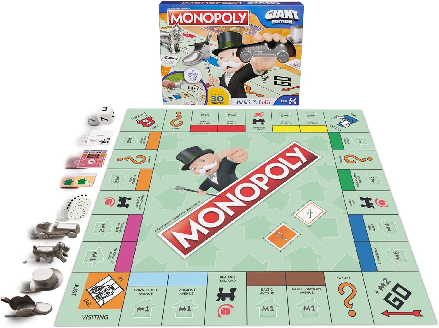 Spin Master Games, Monopoly Giant Edition, Classic Family Board Game for Indoor & Outdoor Play with Oversized Board, Screenless Activity, 2-4 Players, for Ages 6 & Up