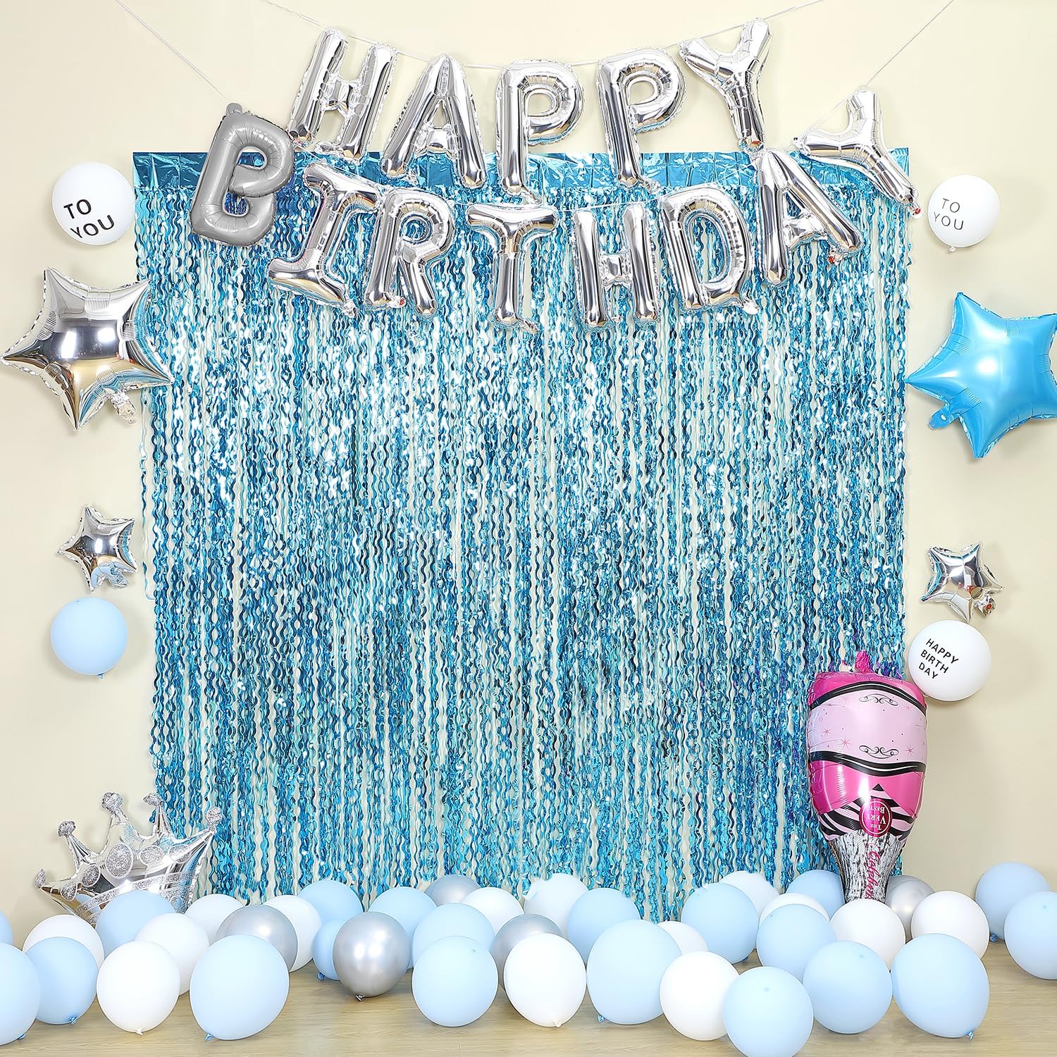 3 Pack Blue Wavy Tinsel Foil Fringe Curtain - 6.6 ft x 3.3 ft Foil Backdrop Photo Booth Props for Mermaid Birthday Under The Sea Party,Baby Shark Birthday Decorations