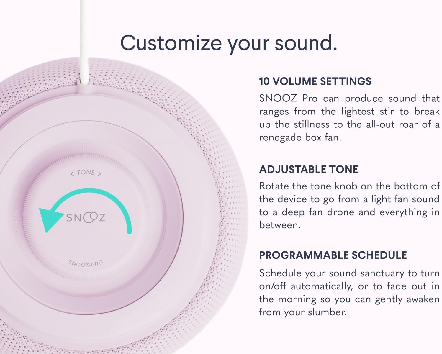 SNOOZ Pro - Smart White Noise Machine & Travel Case - Real Fan Inside, Non-Looping White Noise, Adjustable Tone & Volume - App-Based Remote Control & Sleep Timer - Blush