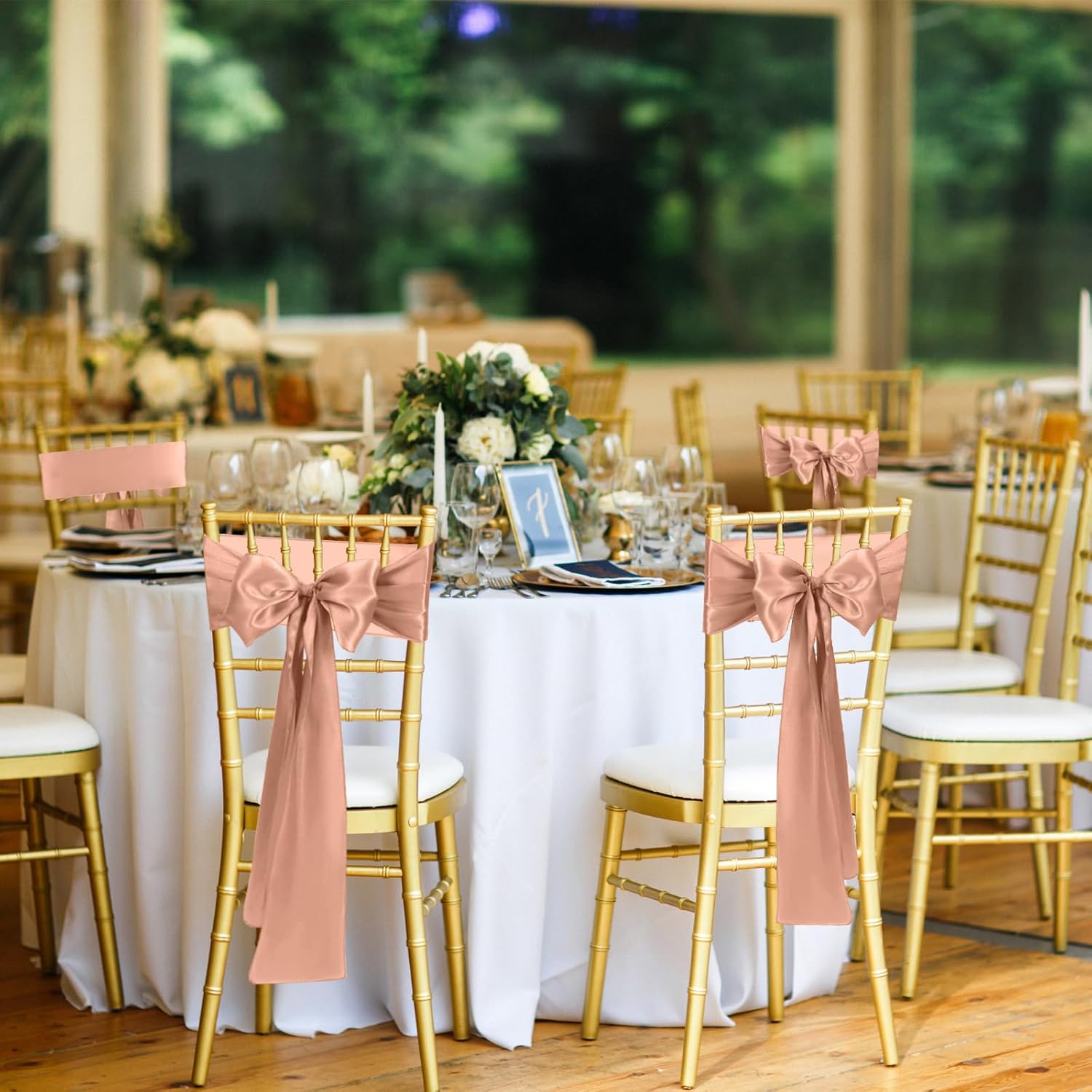 50 PCS Rose Gold Satin Chair Sashes Bows Universal Chair Ribbon Ties Back Sash for Wedding Party Reception Events Banquets Hotel Event Chair Cover Decoration (7x108 inch)