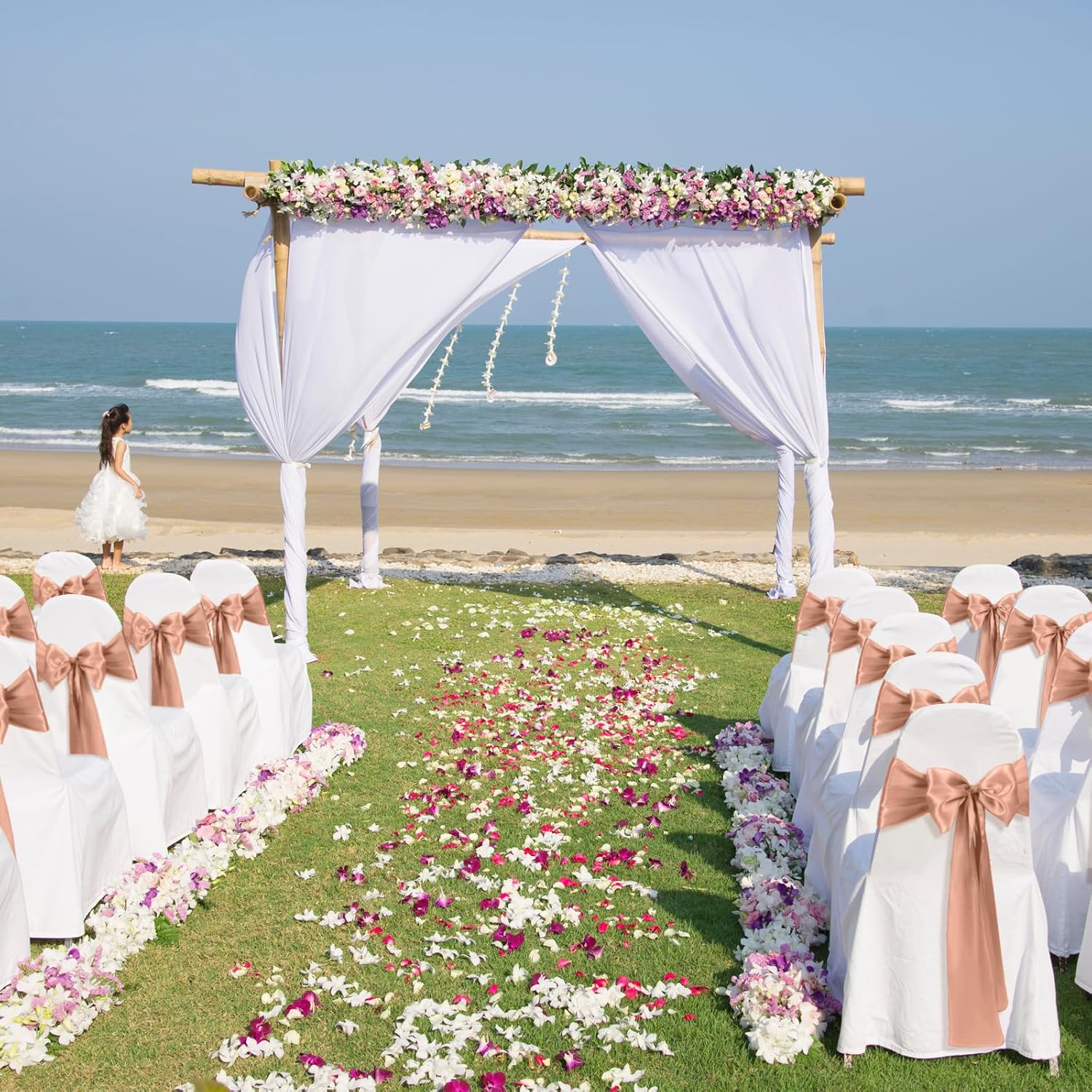 • Care Instructions: These rose gold satin chair sashes ties are hand or machine washable with cold water only. Do not bleach and drying, please line dry. You can cold iron the front and back of it if needed