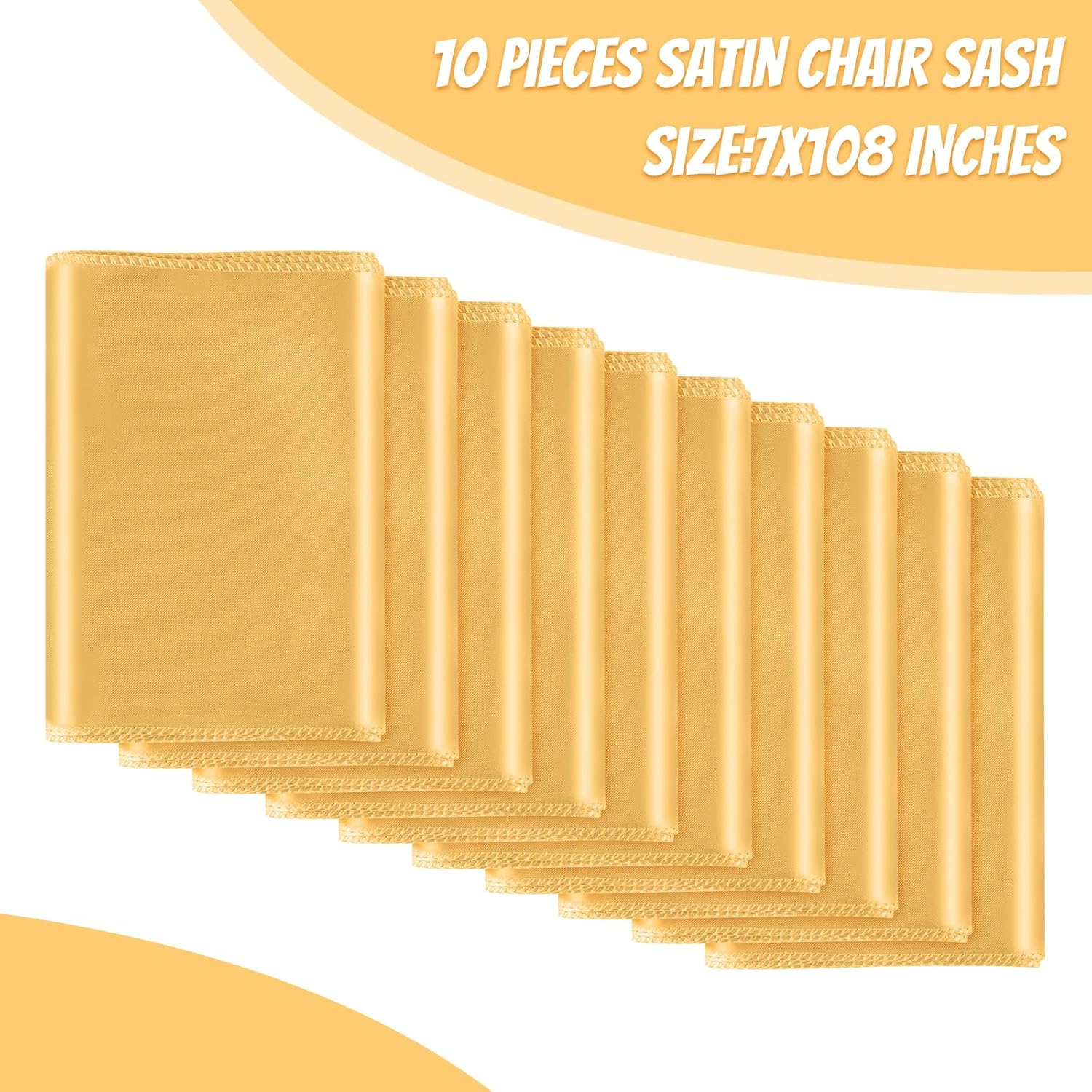 • Size & Package:You will get 10 pieces gold satin chair sashes, and the size is about 108" x7" or 275cm(l) x 17cm(w). These chair ties adopt flating packing, please to tie the bow by yourself. Each package includes chair sashes only, no chair covers