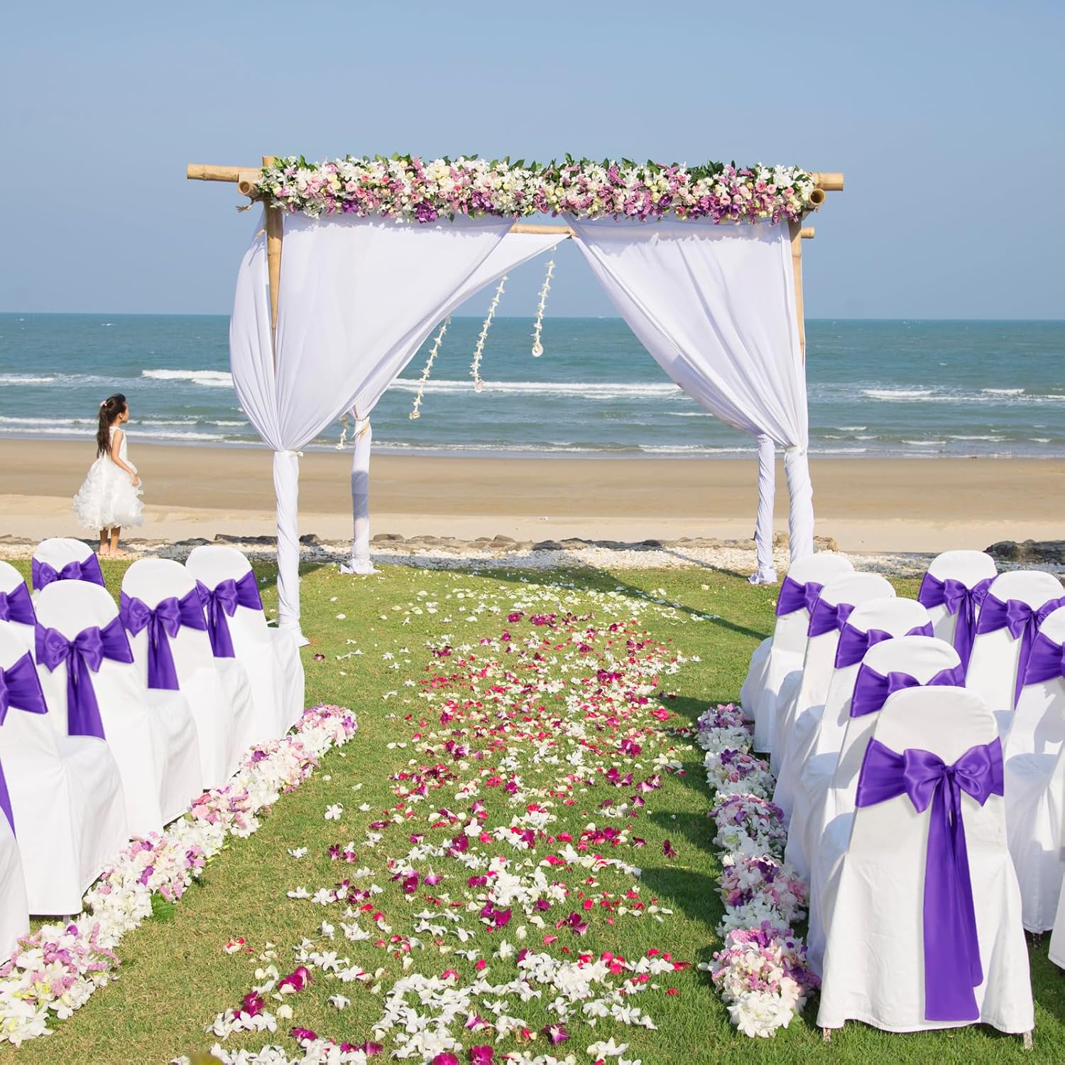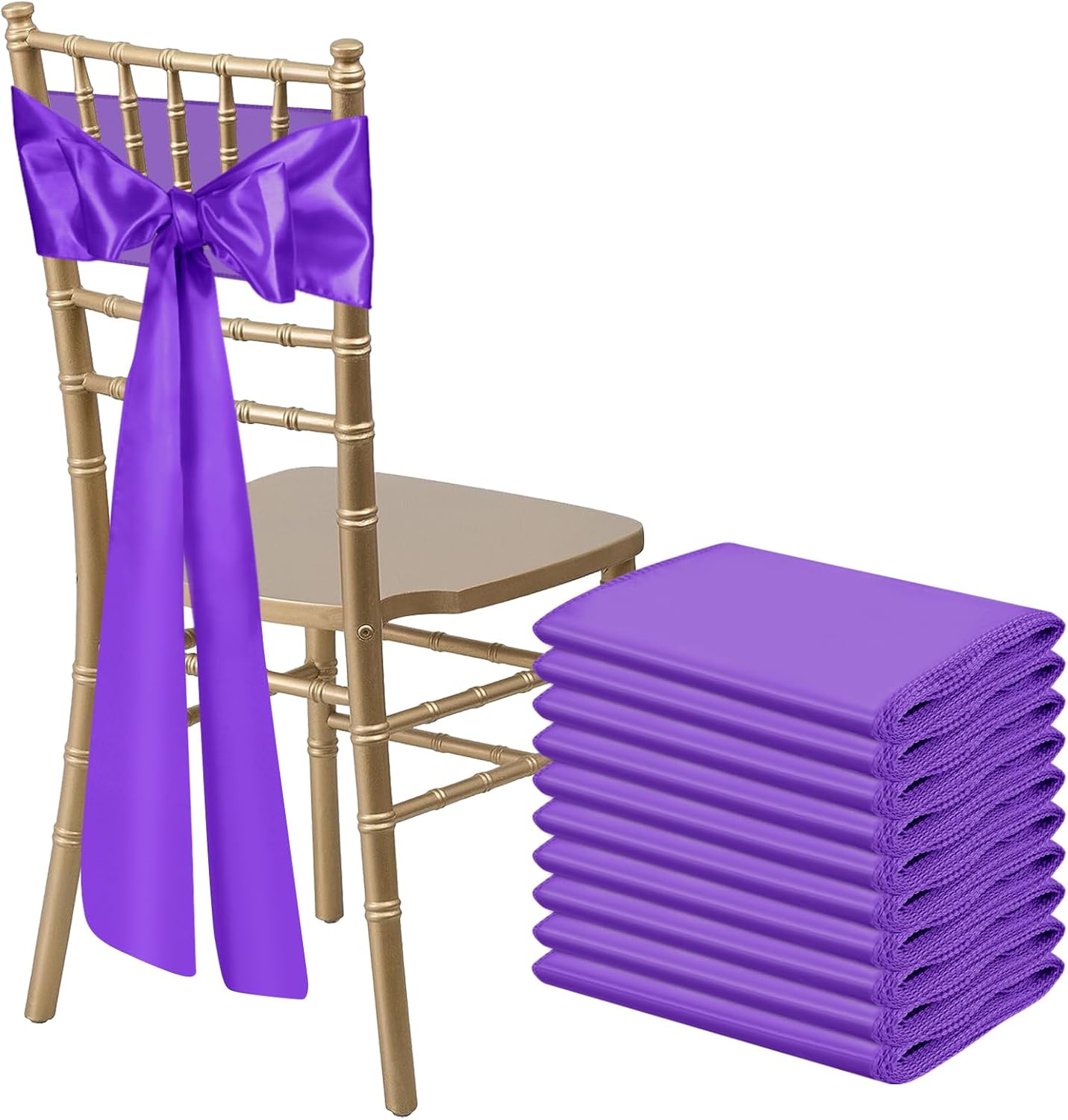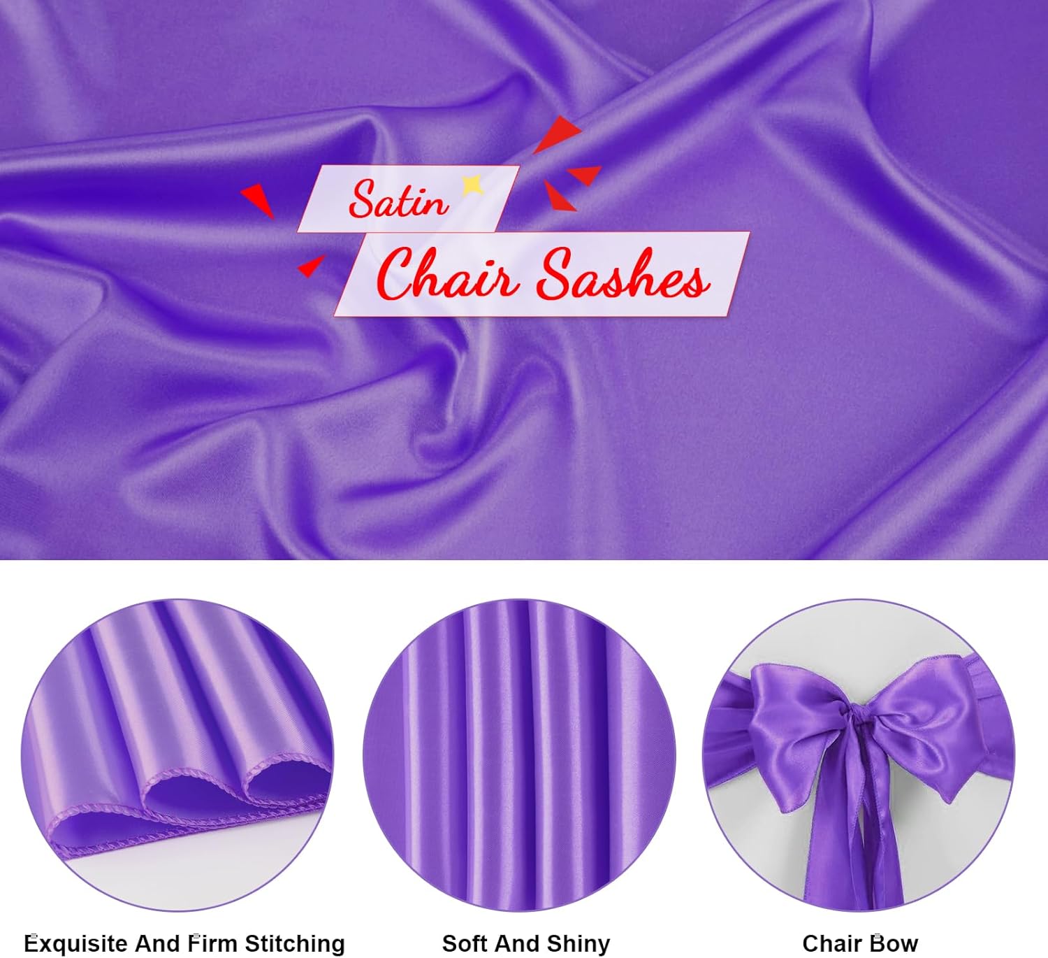 • Care Instructions: These purple satin chair sashes ties are hand or machine washable with cold water only. Do not bleach and drying, please line dry. You can cold iron the front and back of it if needed