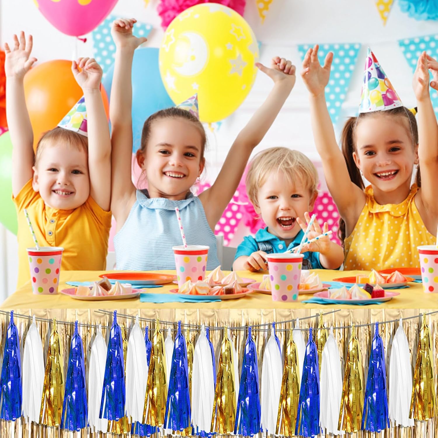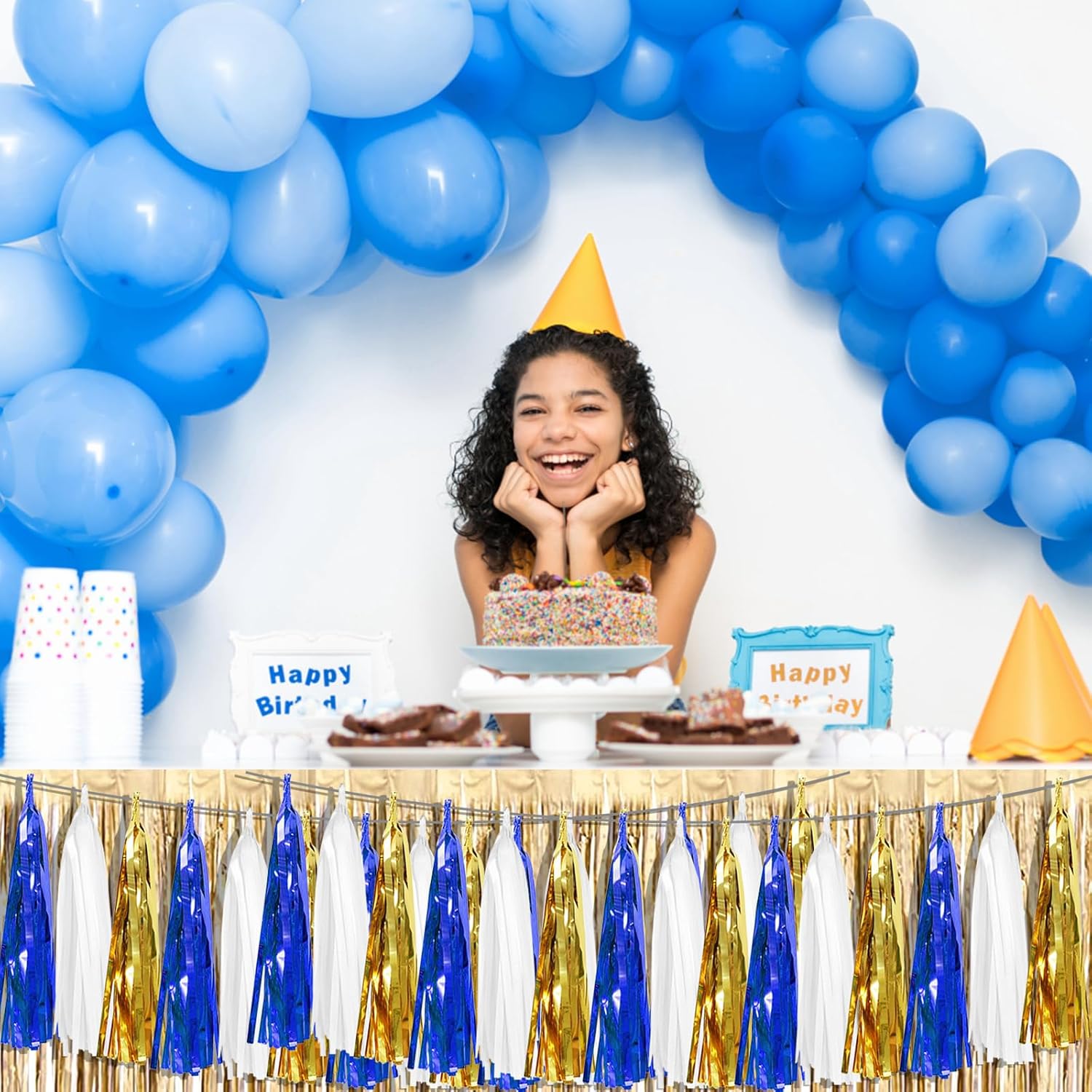 6P Navy-Blue White-Gold Foil Fringe Metallic Tassel-Garland, Tassels Banner Streamers for Parade Floats, Bachelorette, Wedding, Birthday, Graduation, Christmas, Bridal/Baby Shower Party Decorations