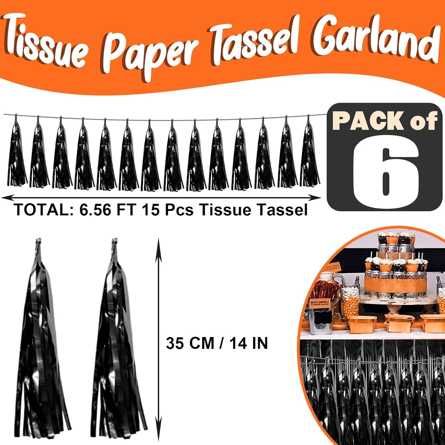 • 【Black Party Supplies Set】: The total length of the black birthday tassels banner is 59 feet, divided into 6 strips, each 9.8 feet long. Each banner contains 15 tassels, and each tassel measures 14 inches, for birthday decorations many occasions, and so on