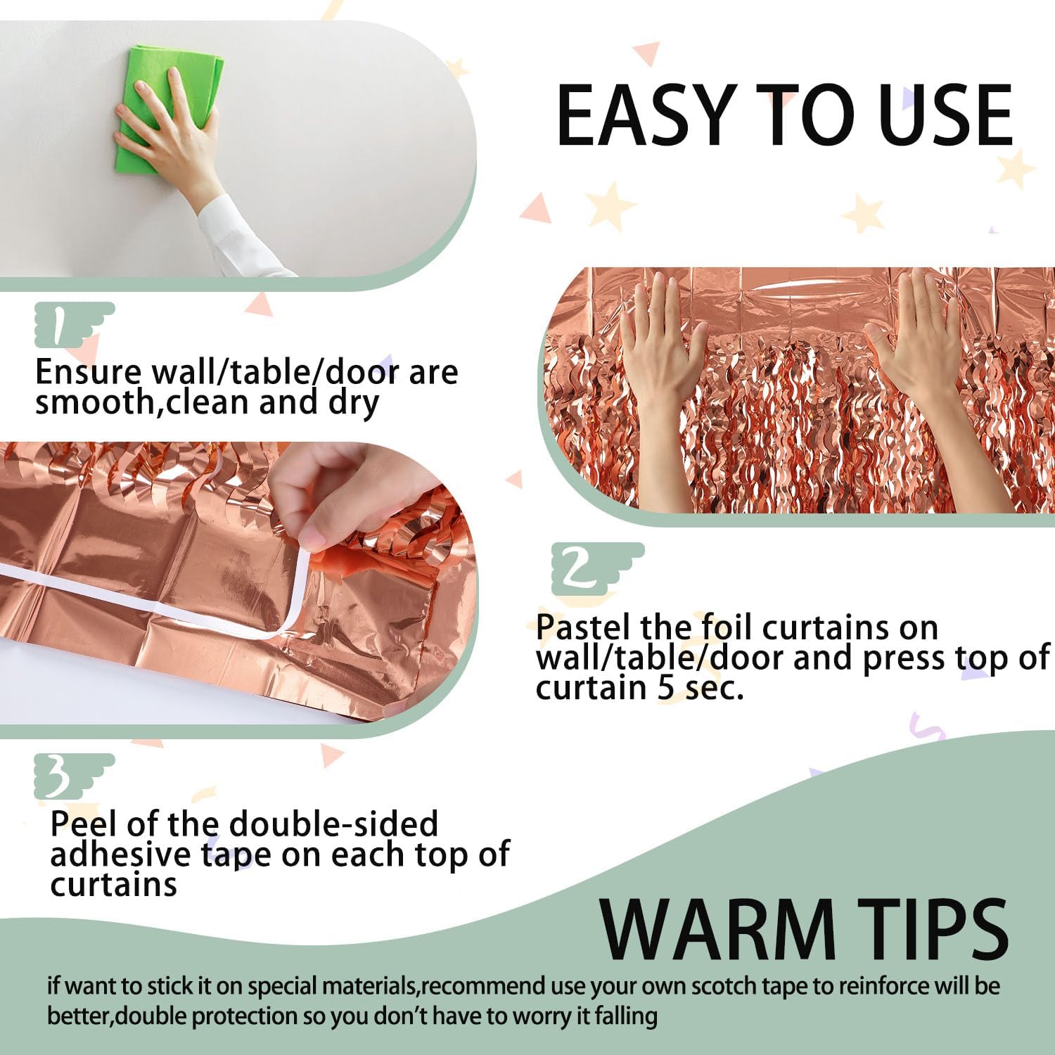 • Easy To Use: This foil backdrop comes with double sided tape on the back of them, what you need to do is just gently take it out of the package, peel the tape off then paste the fringe curtain on the top of wall or door
