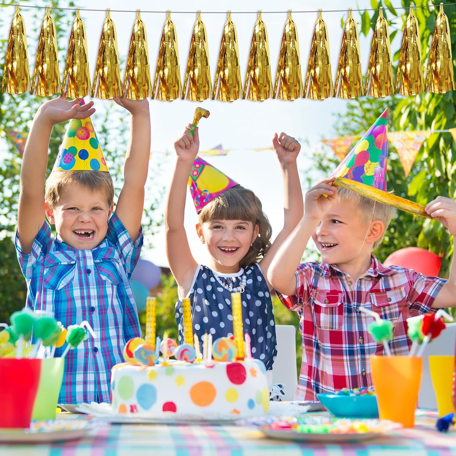 • 【Gold Party Supplies Set】: The total length of the gold birthday tassels banner is 26.2 feet, divided into 4 strips, each 6.5 feet long. Each banner contains 15 tassels, and each tassel measures 14 inches, for birthday decorations many occasions, and so on